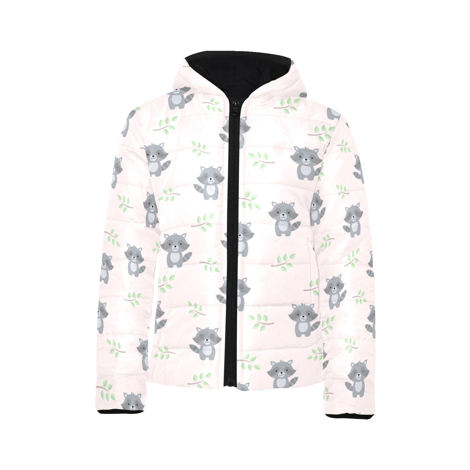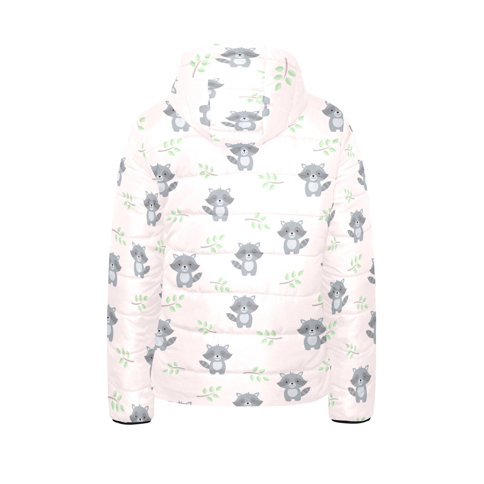 cute raccoons leaves pattern Kids' Boys' Girls' Padded Hooded Jacket