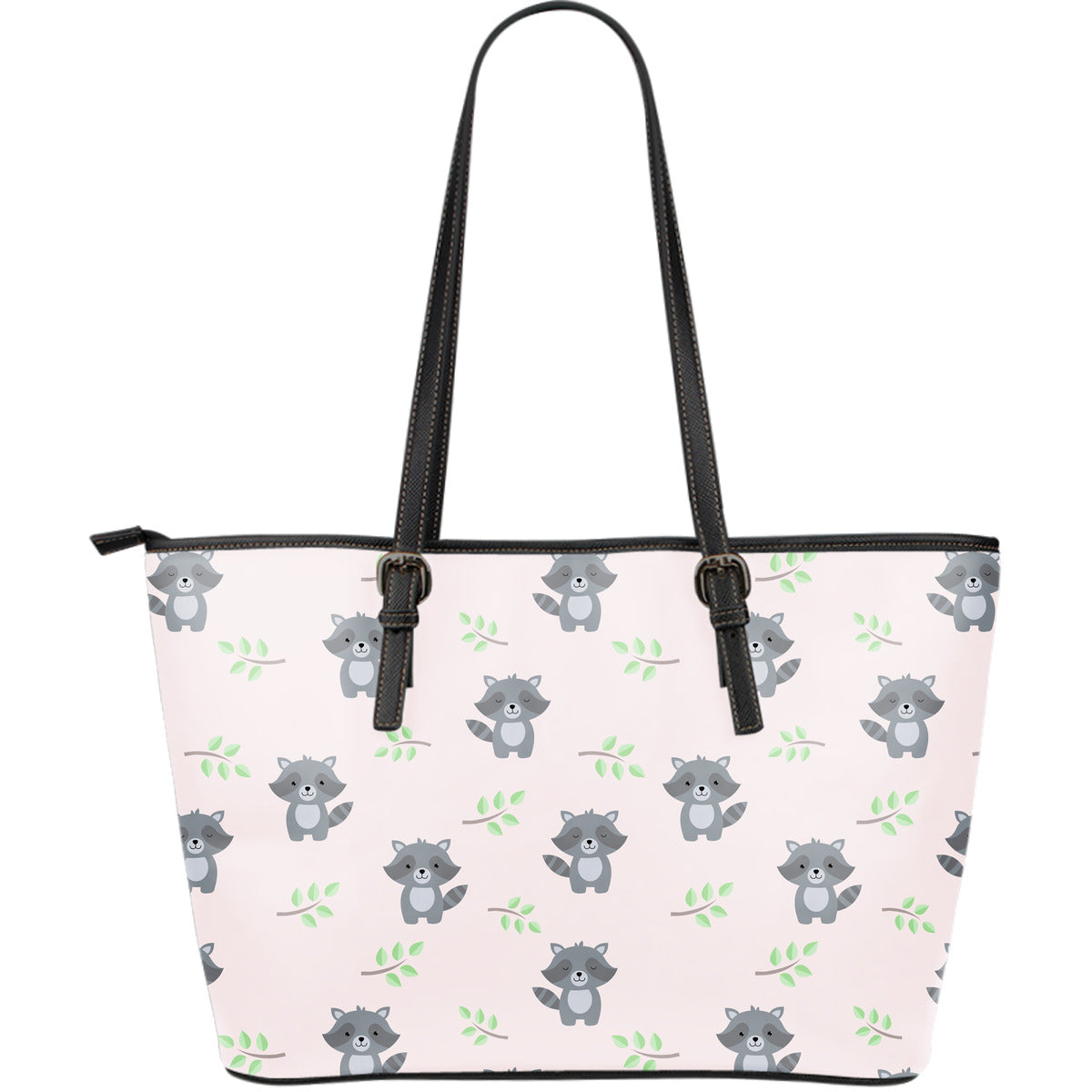 cute raccoons leaves pattern Large Leather Tote Bag is a uniqued design and limited item. It made to order, hand printed, and sewn with love in our factory.