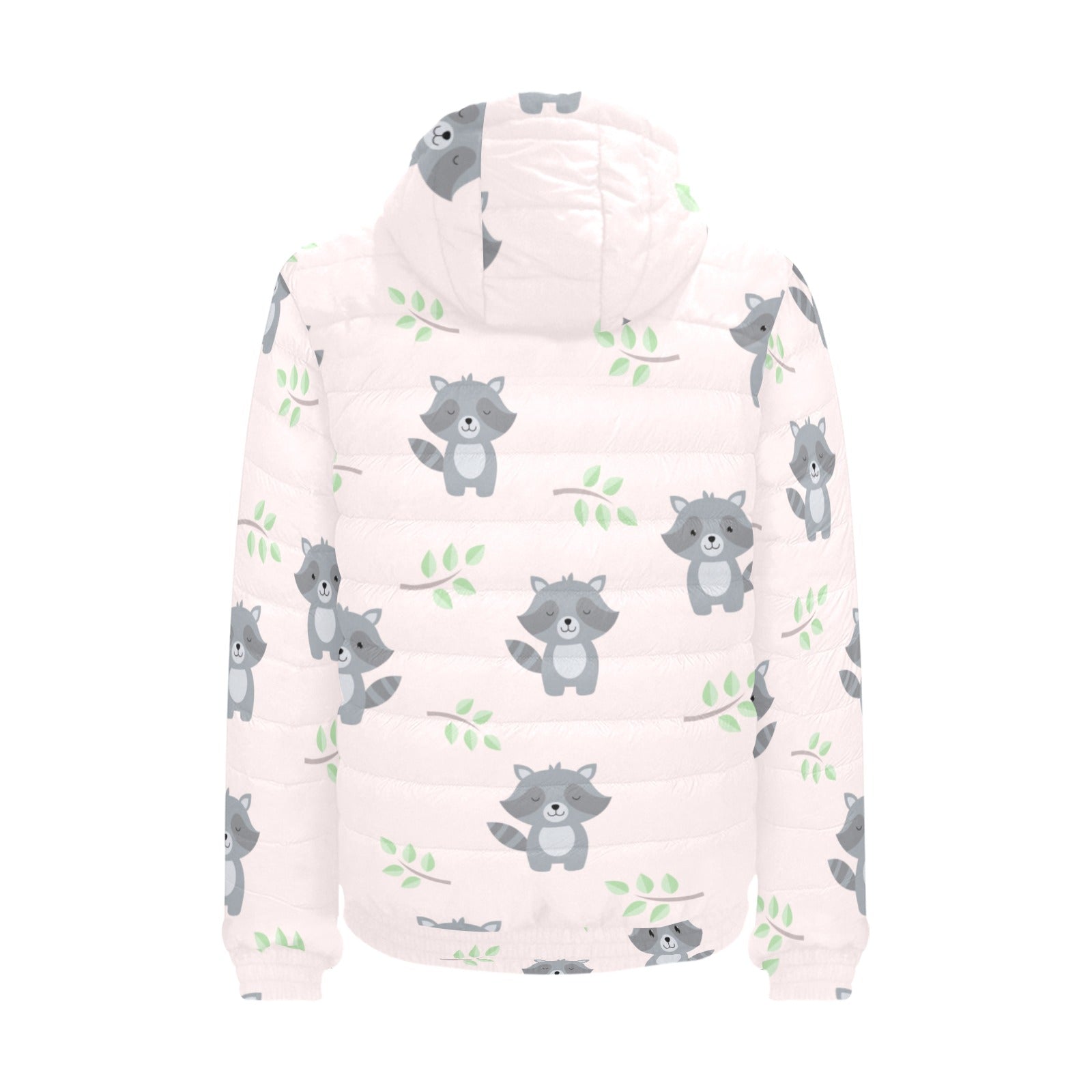 cute raccoons leaves pattern Men's Padded Hooded Jacket