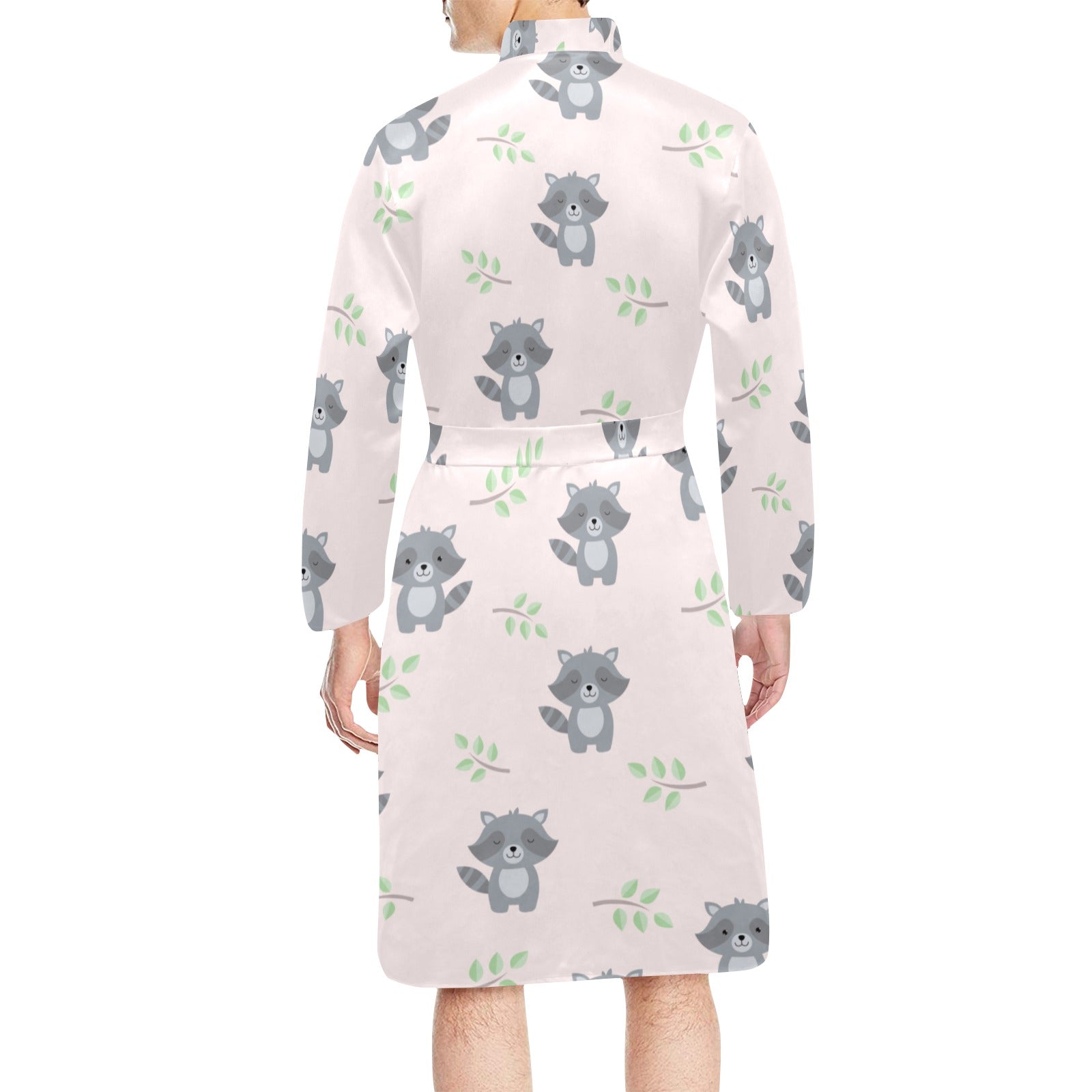 cute raccoons leaves pattern Men's Long Sleeve Belted Night Robe
