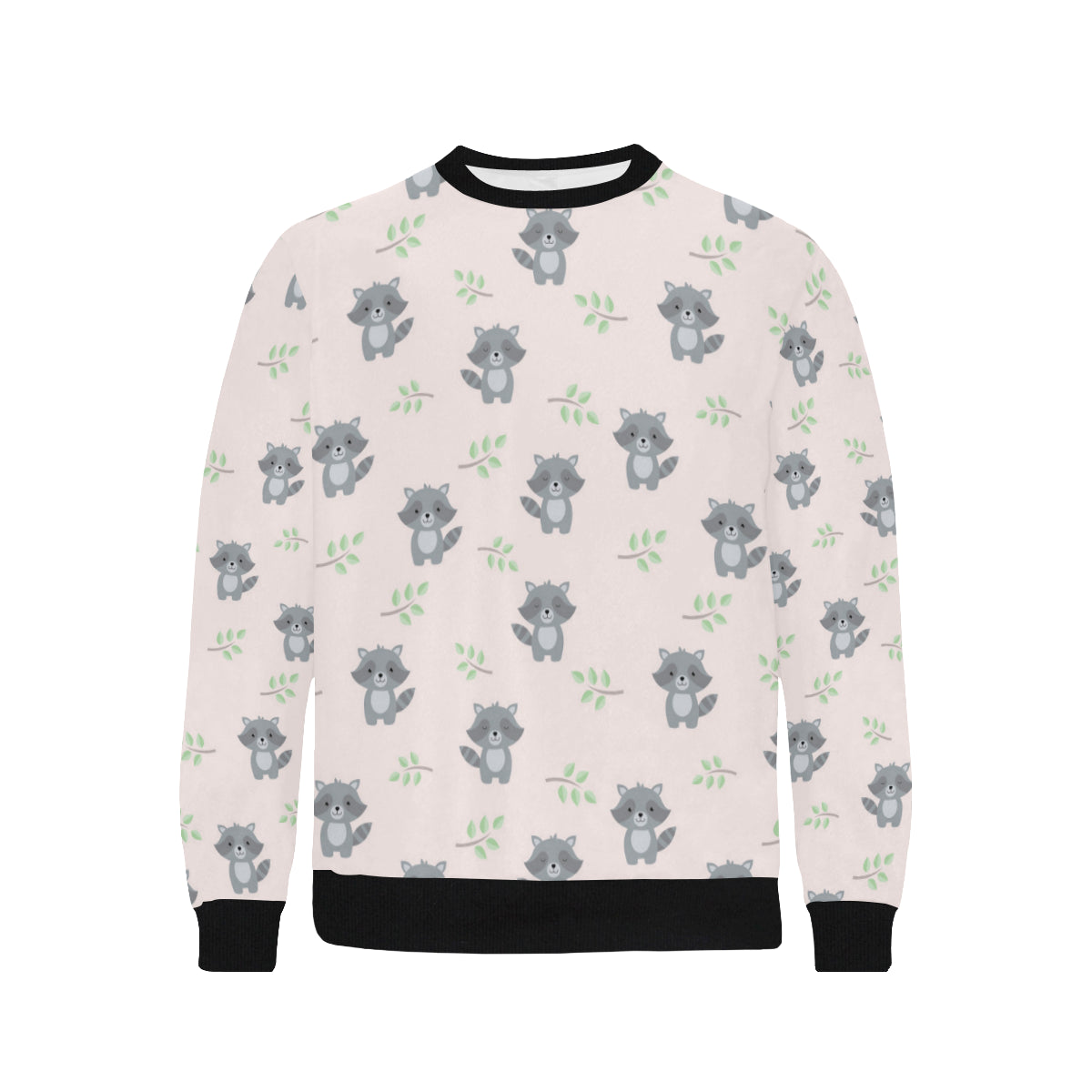 cute raccoons leaves pattern Men's Crew Neck Sweatshirt