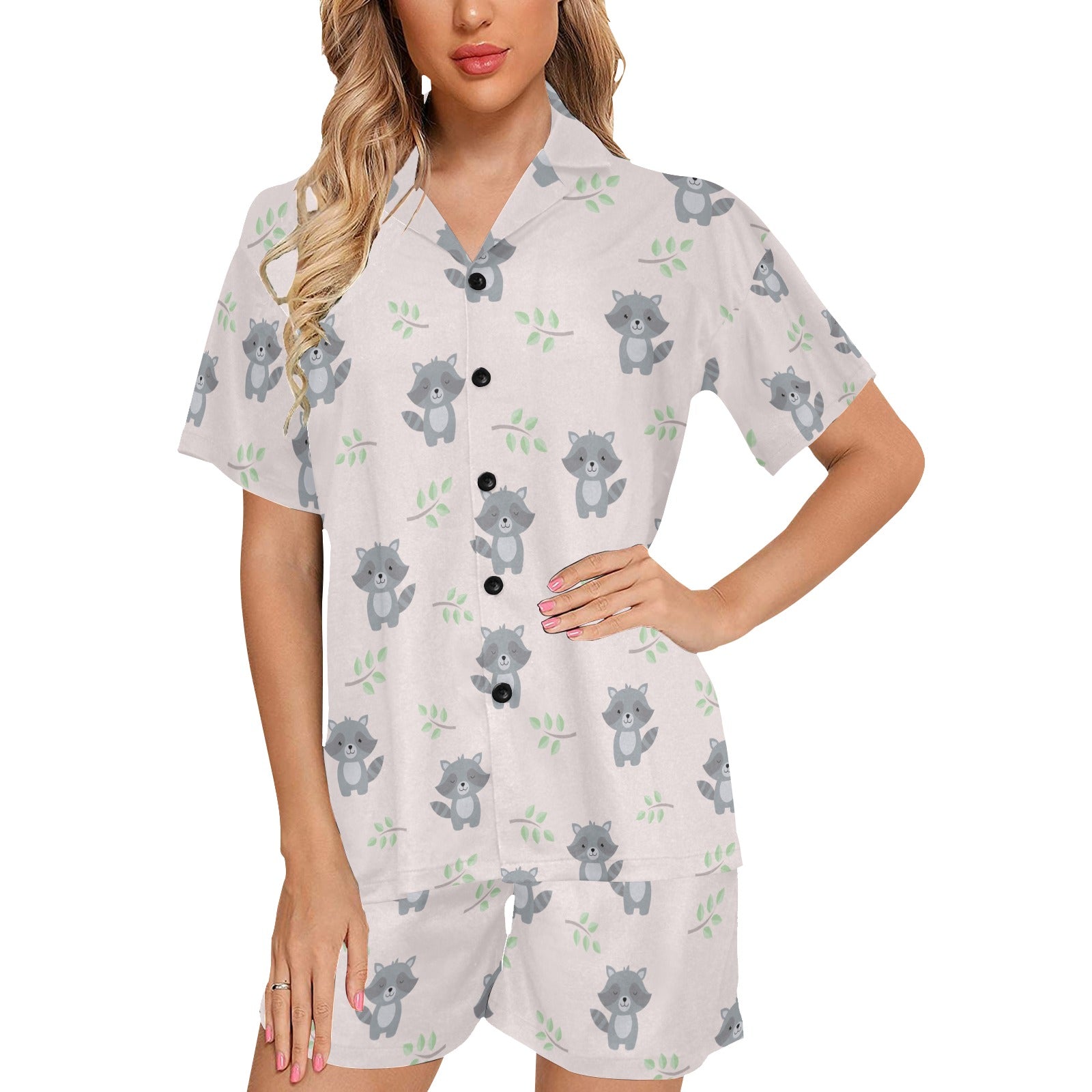 cute raccoons leaves pattern Women's V-Neck Short Pajama Set
