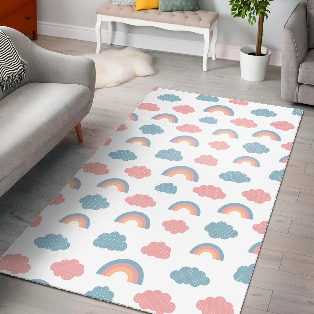 Cute rainbow clound pattern Area Rug is a uniqued design and limited item. It made to order, hand printed, and sewn with love in our factory.