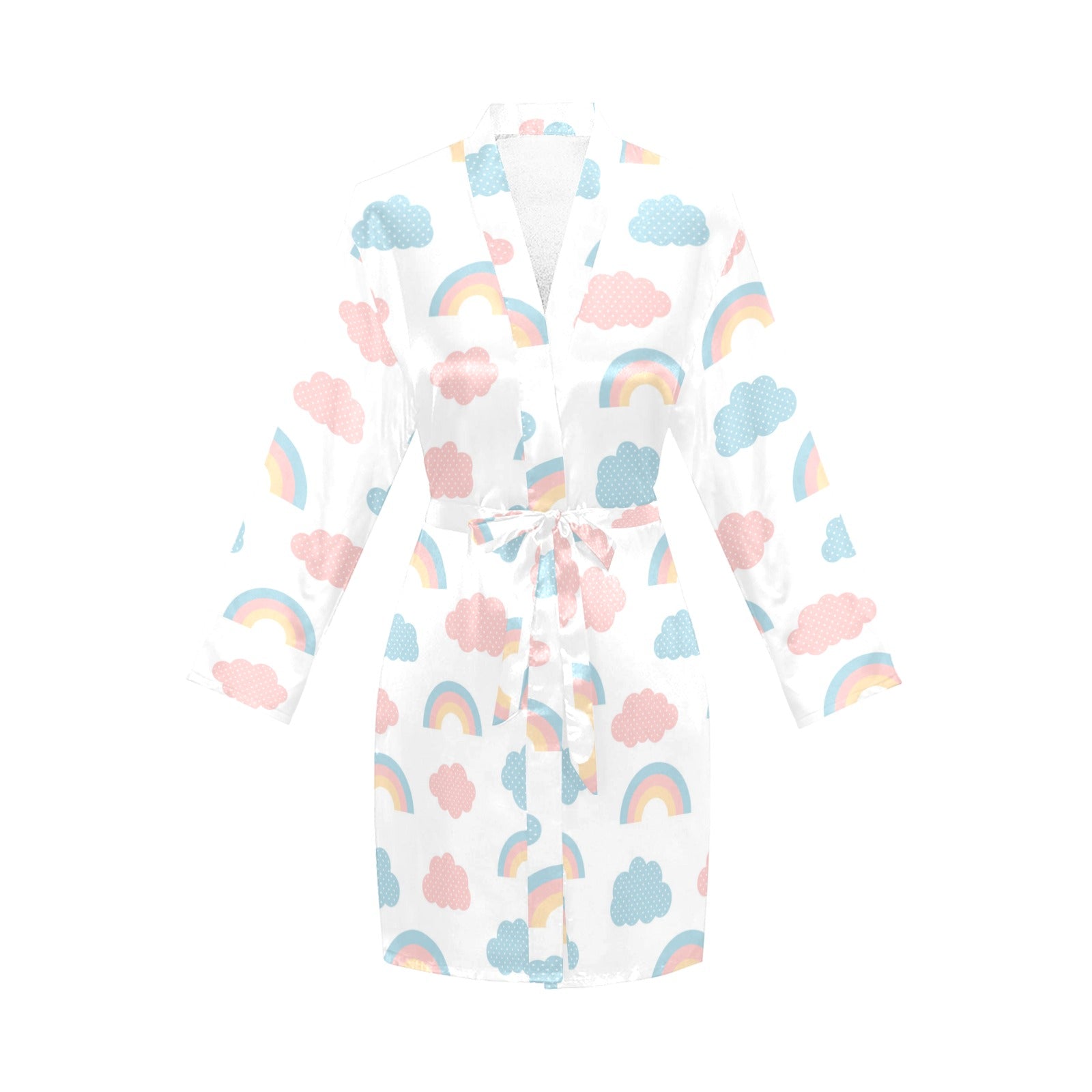 Cute rainbow clound pattern Women's Long Sleeve Belted Night Robe