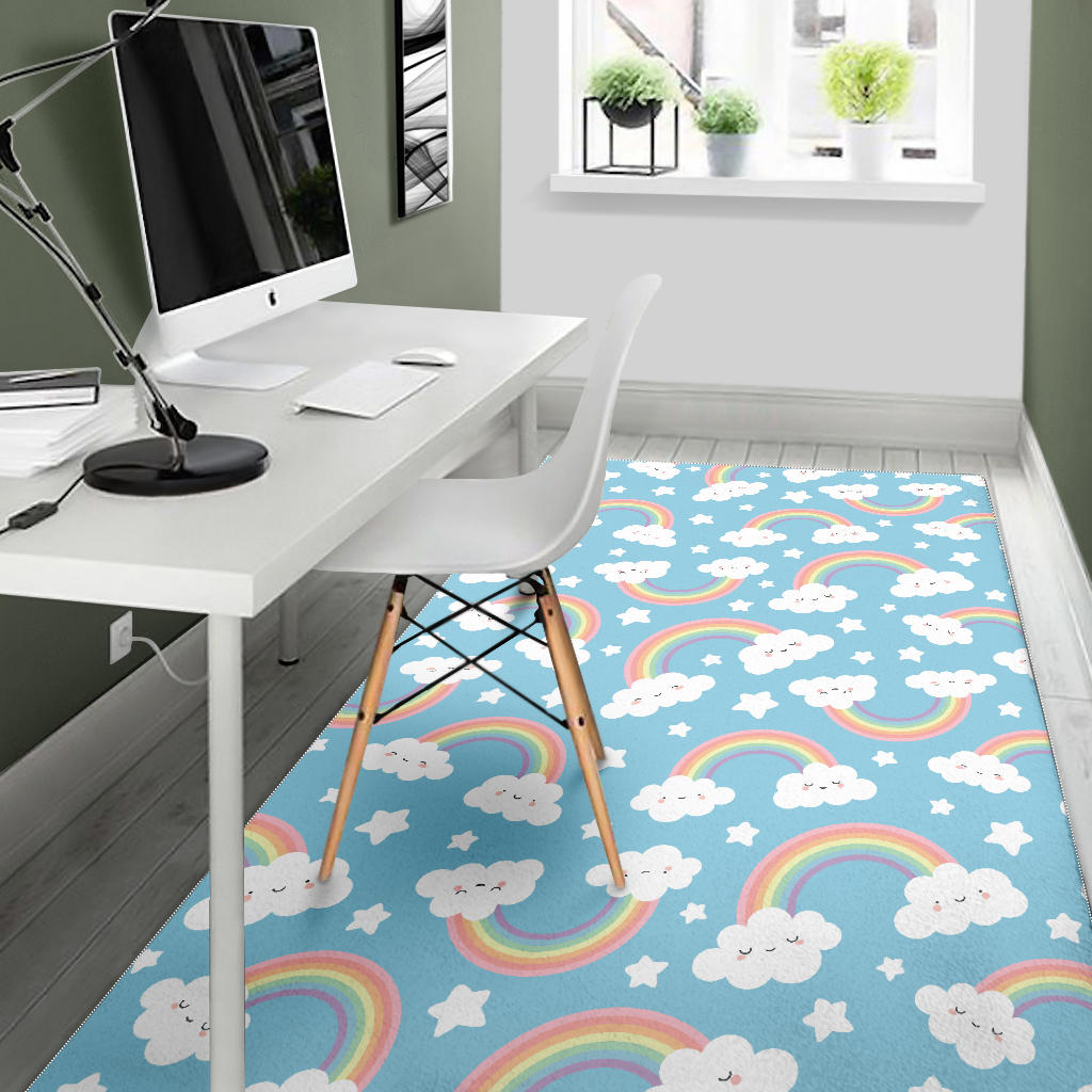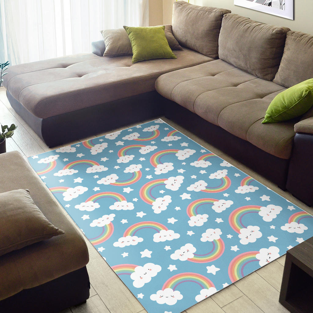 Cute rainbow clound star pattern blue background Area Rug is a uniqued design and limited item. It made to order, hand printed, and sewn with love in our factory.