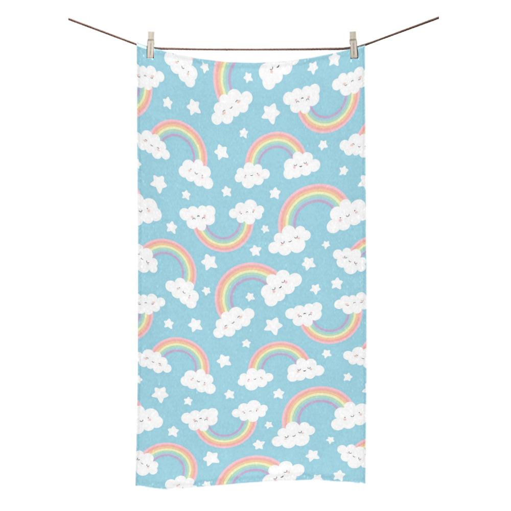 Cute rainbow clound star pattern blue background Bath Towel 30"x56" is a uniqued design and limited item. It made to order, hand printed, and sewn with love in our factory.