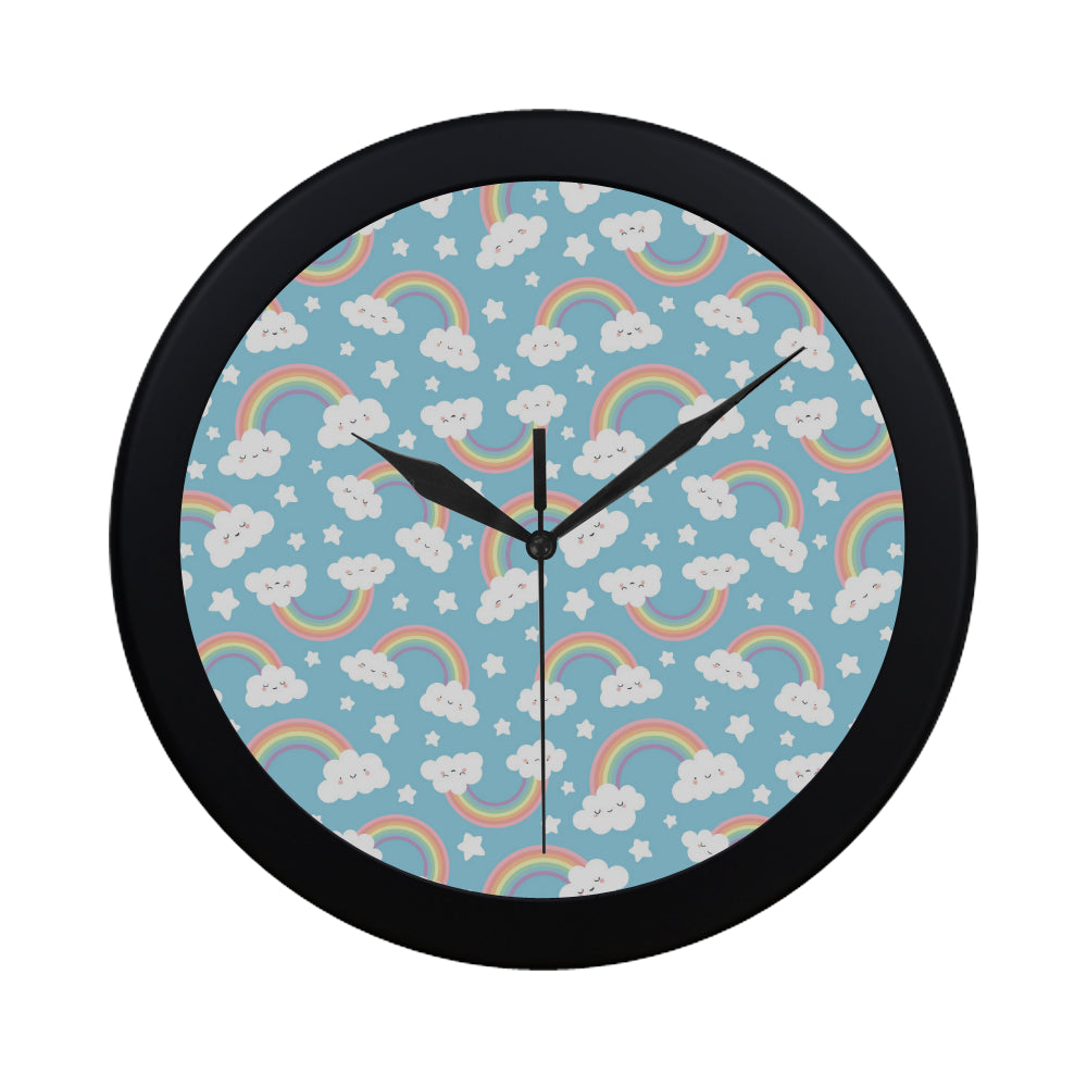 Cute rainbow clound star pattern blue background Elegant Black Wall Clock is a uniqued design and limited item. It made to order, hand printed, and sewn with love in our factory.