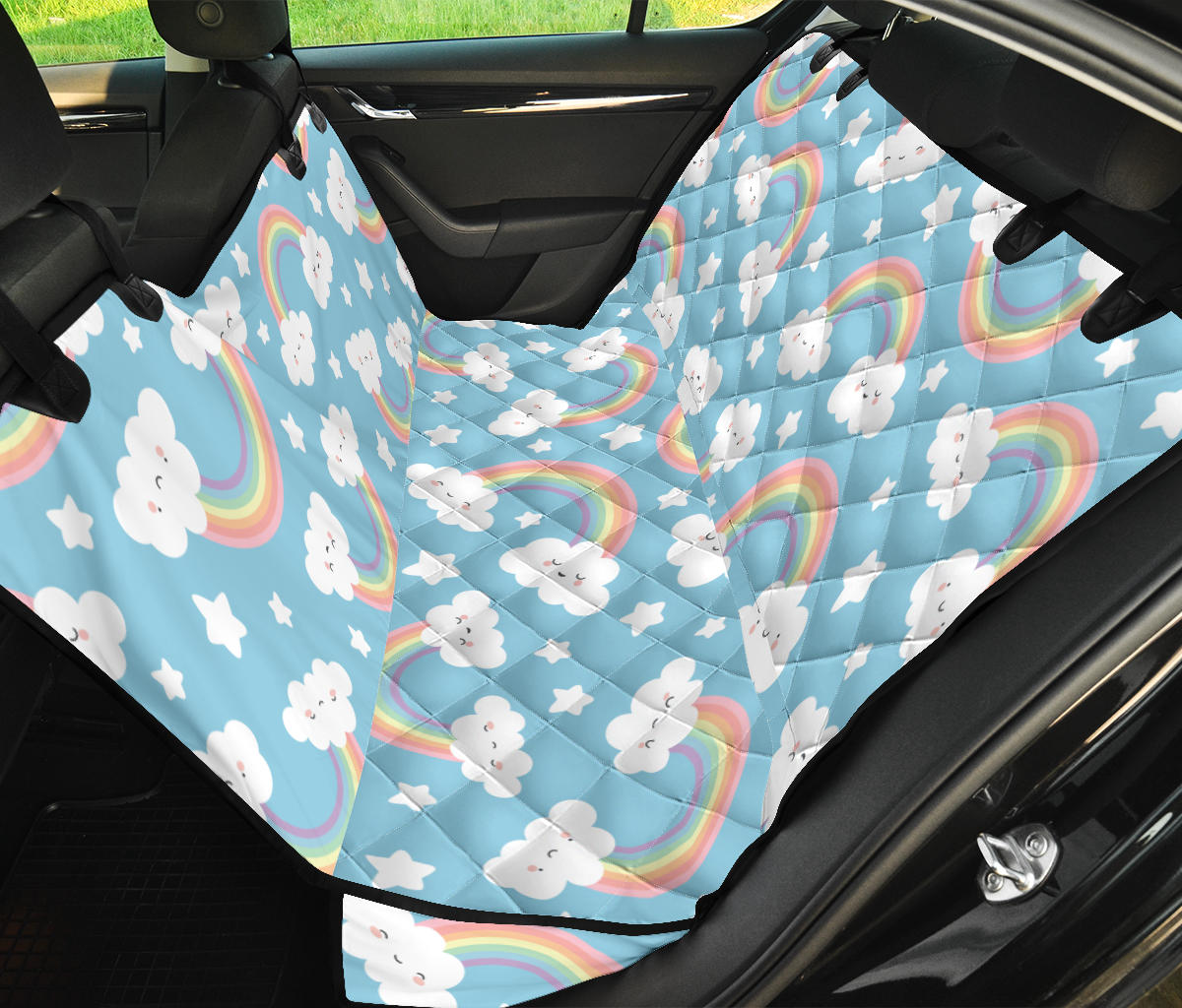 Cute rainbow clound star pattern blue background Dog Car Seat Covers is a uniqued design and limited item. It made to order, hand printed, and sewn with love in our factory.
