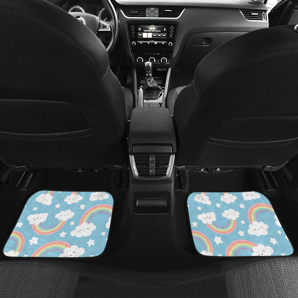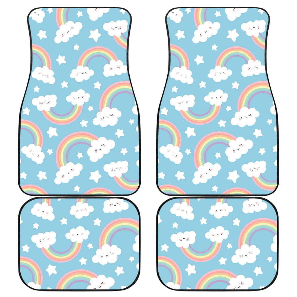 Cute Rainbow Clound Star Pattern Blue Background Front And Back Car Mats