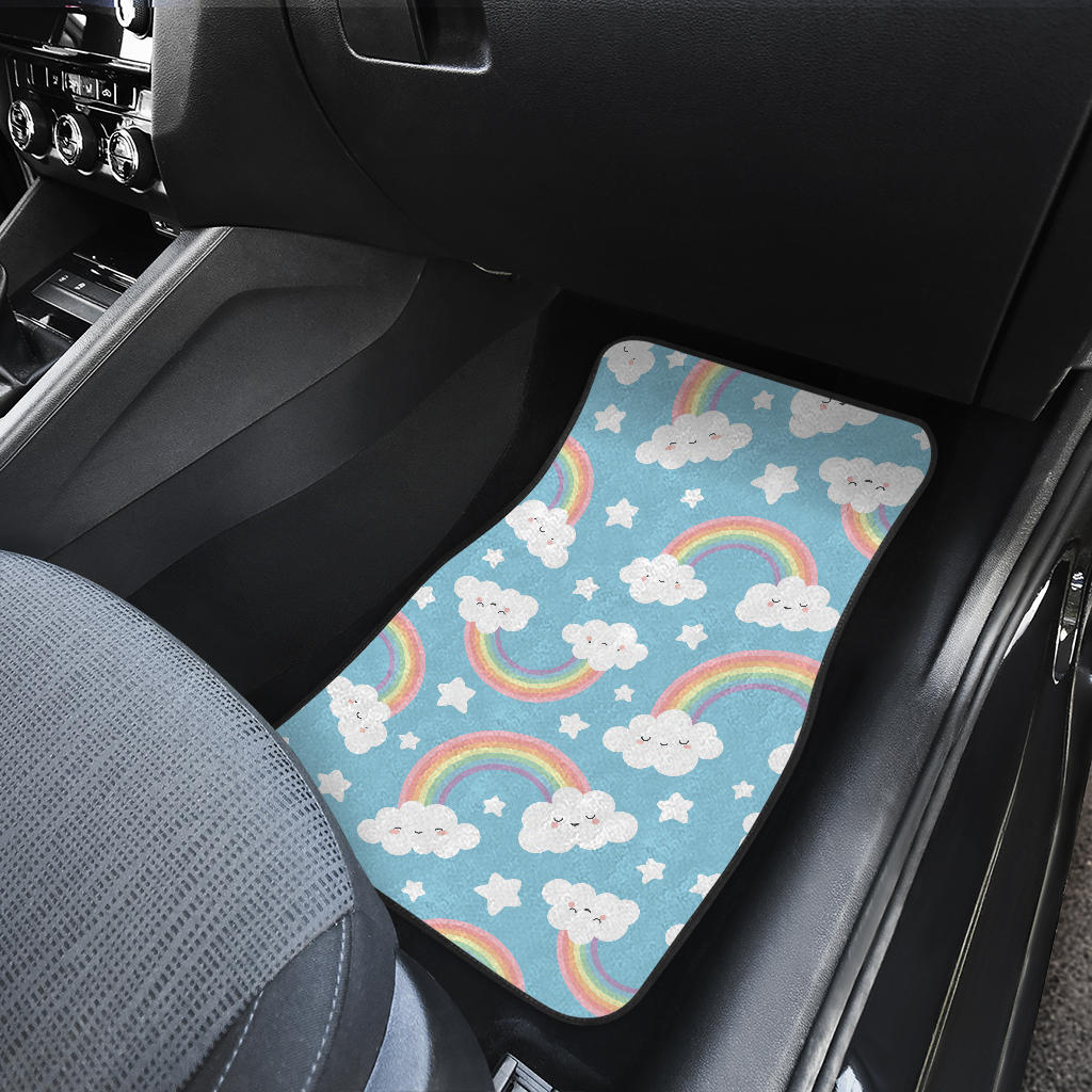 Cute rainbow clound star pattern blue background Front and Back Car Mats are uniqued design and limited item. It made to order, hand printed, and sewn with love in our factory.