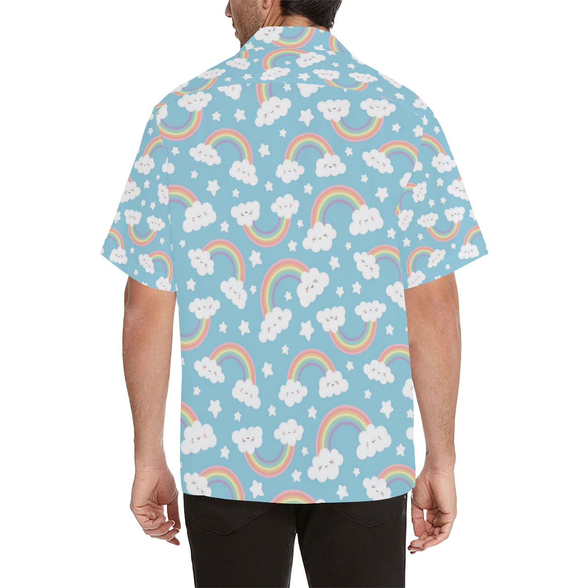 Cute rainbow clound star pattern blue background Men's All Over Print Hawaiian Shirt is a uniqued design and limited item. It made to order, hand printed, and sewn with love in our factory.