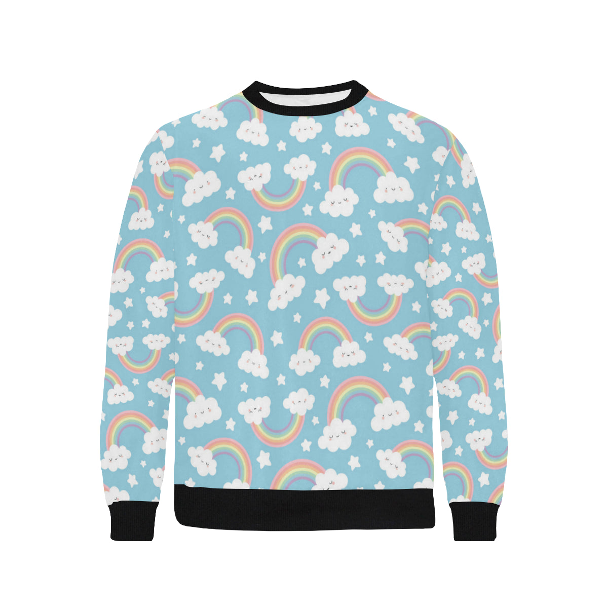 Cute rainbow clound star pattern blue background Men's Crew Neck Sweatshirt is a uniqued design and limited item. It made to order, hand printed, and sewn with love in our factory.