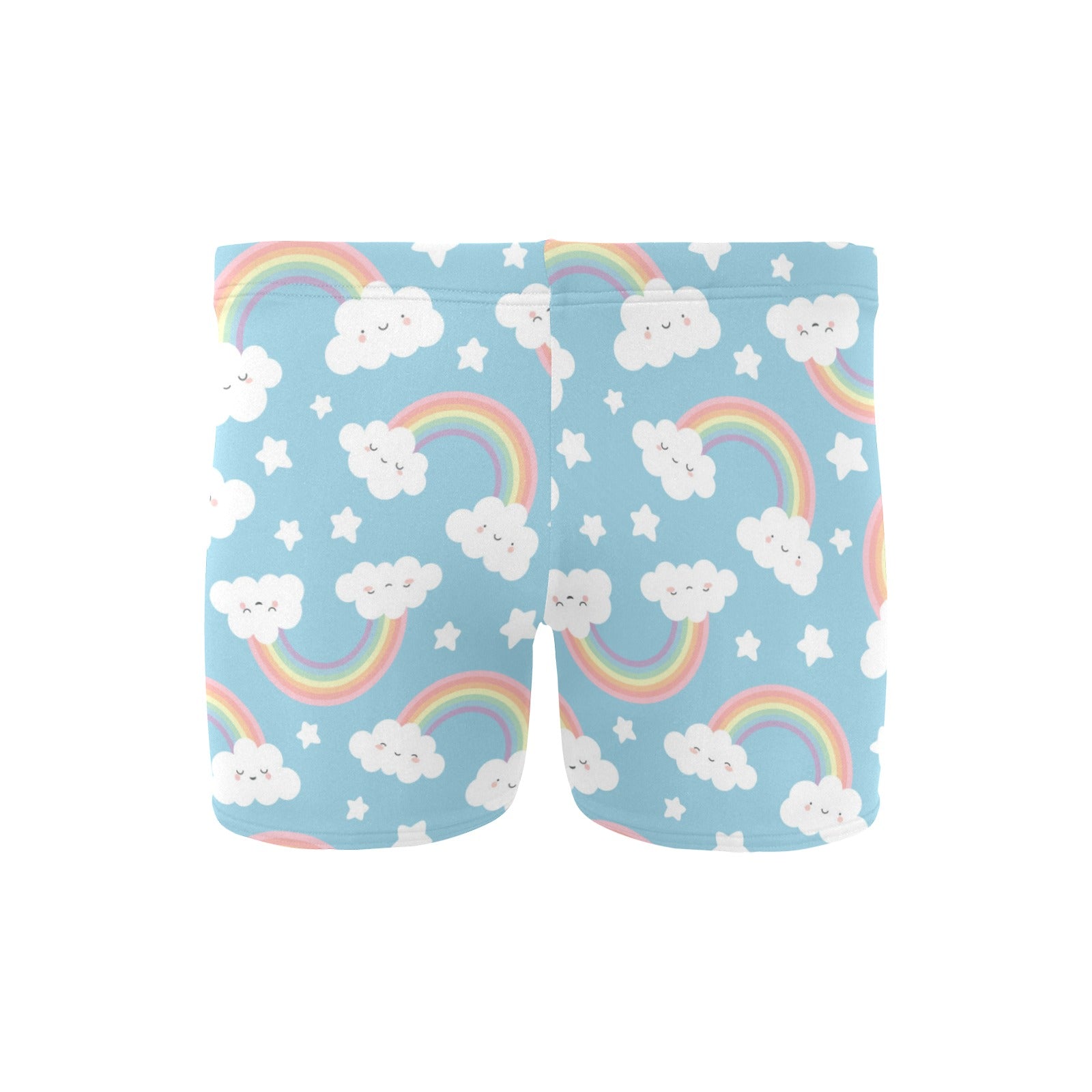 Cute rainbow clound star pattern blue background Men's Swimming Trunks