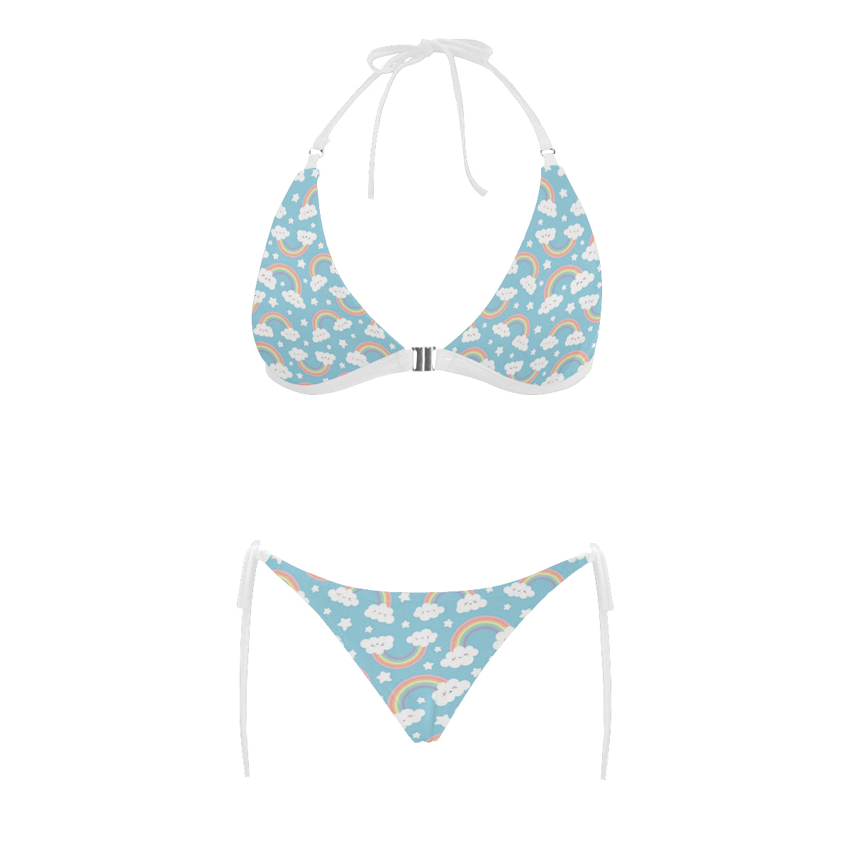 Cute rainbow clound star pattern blue background Sexy Bikinis Two-Piece Swimsuits are uniqued design and limited item. It made to order, hand printed, and sewn with love in our factory.