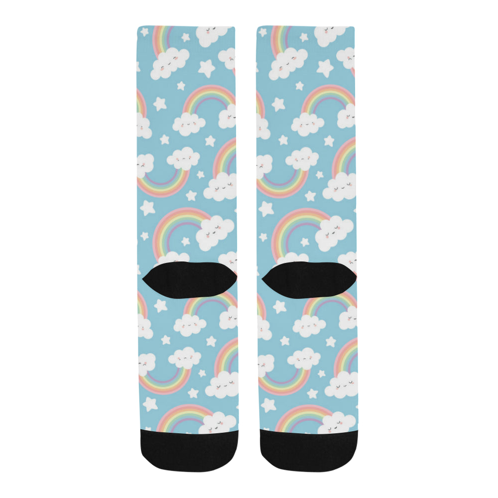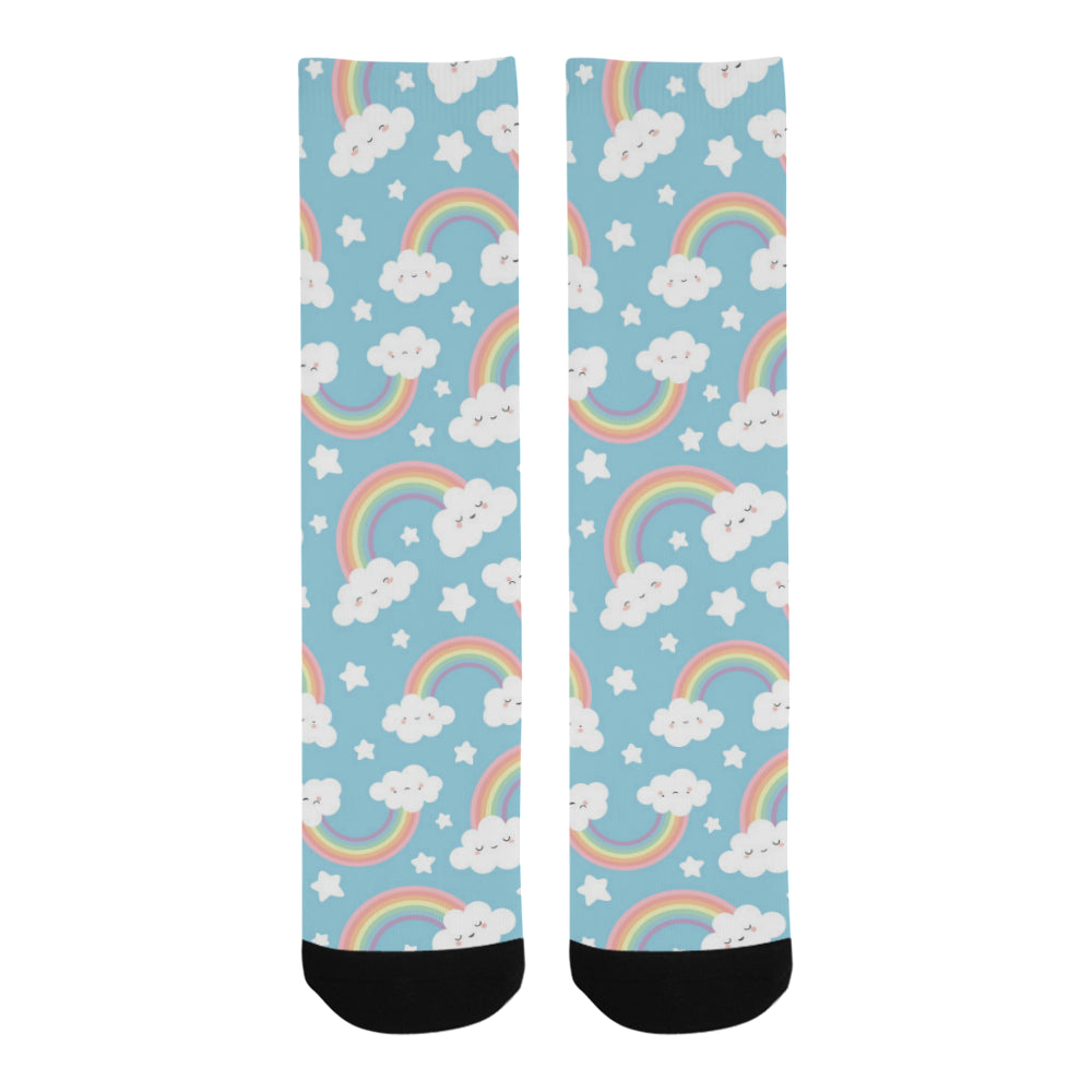 Cute rainbow clound star pattern blue background Crew Socks are uniqued design and limited item. It made to order, hand printed, and sewn with love in our factory.