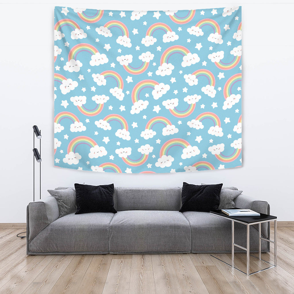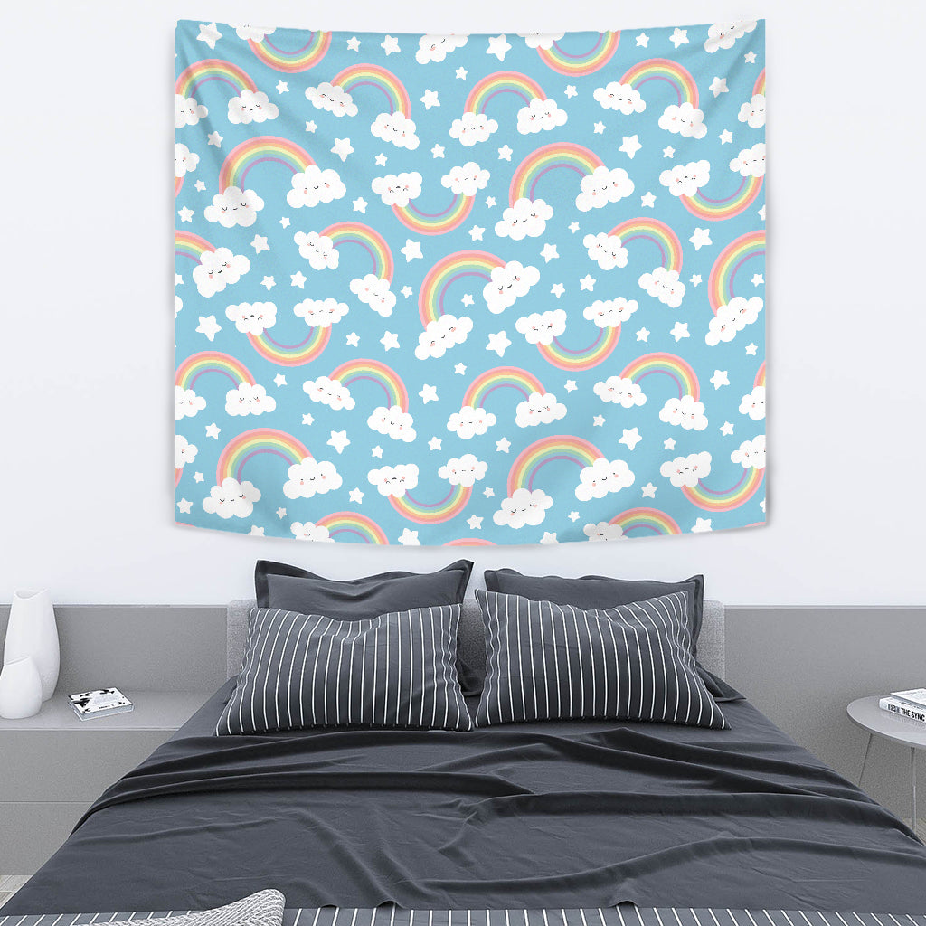 Cute rainbow clound star pattern blue background Tapestry is a uniqued design and limited item. It made to order, hand printed, and sewn with love in our factory.