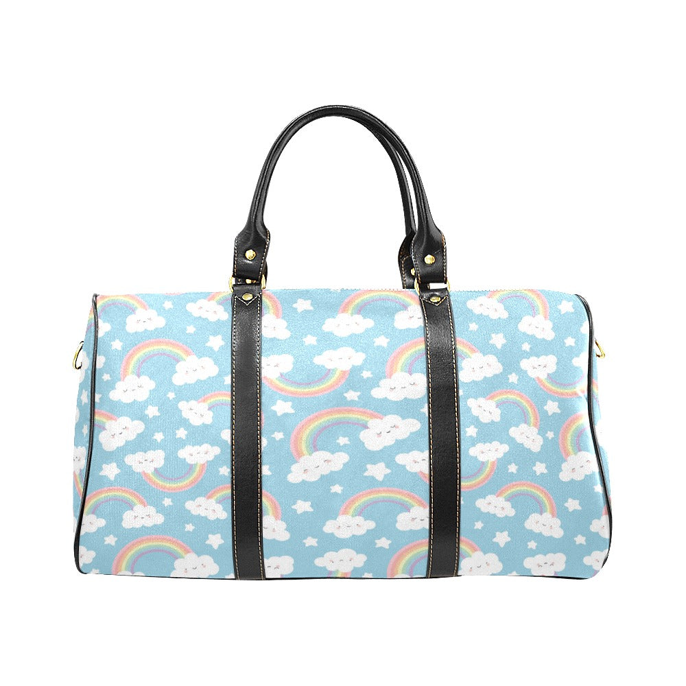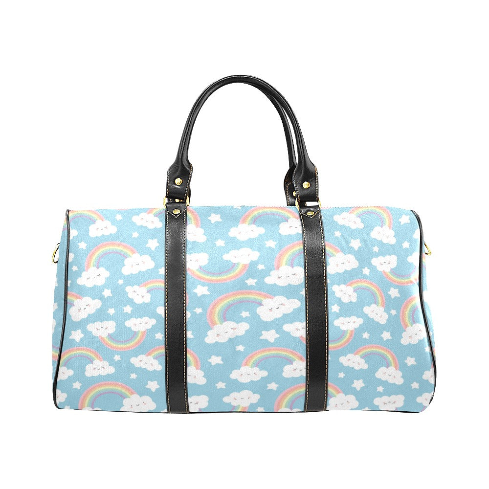 Cute rainbow clound star pattern blue background Travel Bag