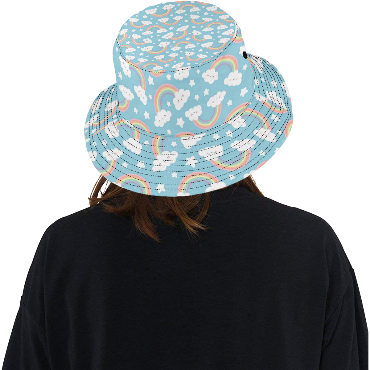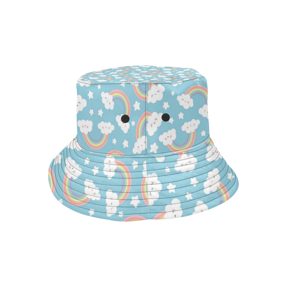 Cute rainbow clound star pattern blue background Unisex Bucket Hat is a uniqued design and limited item. It made to order, hand printed, and sewn with love in our factory.