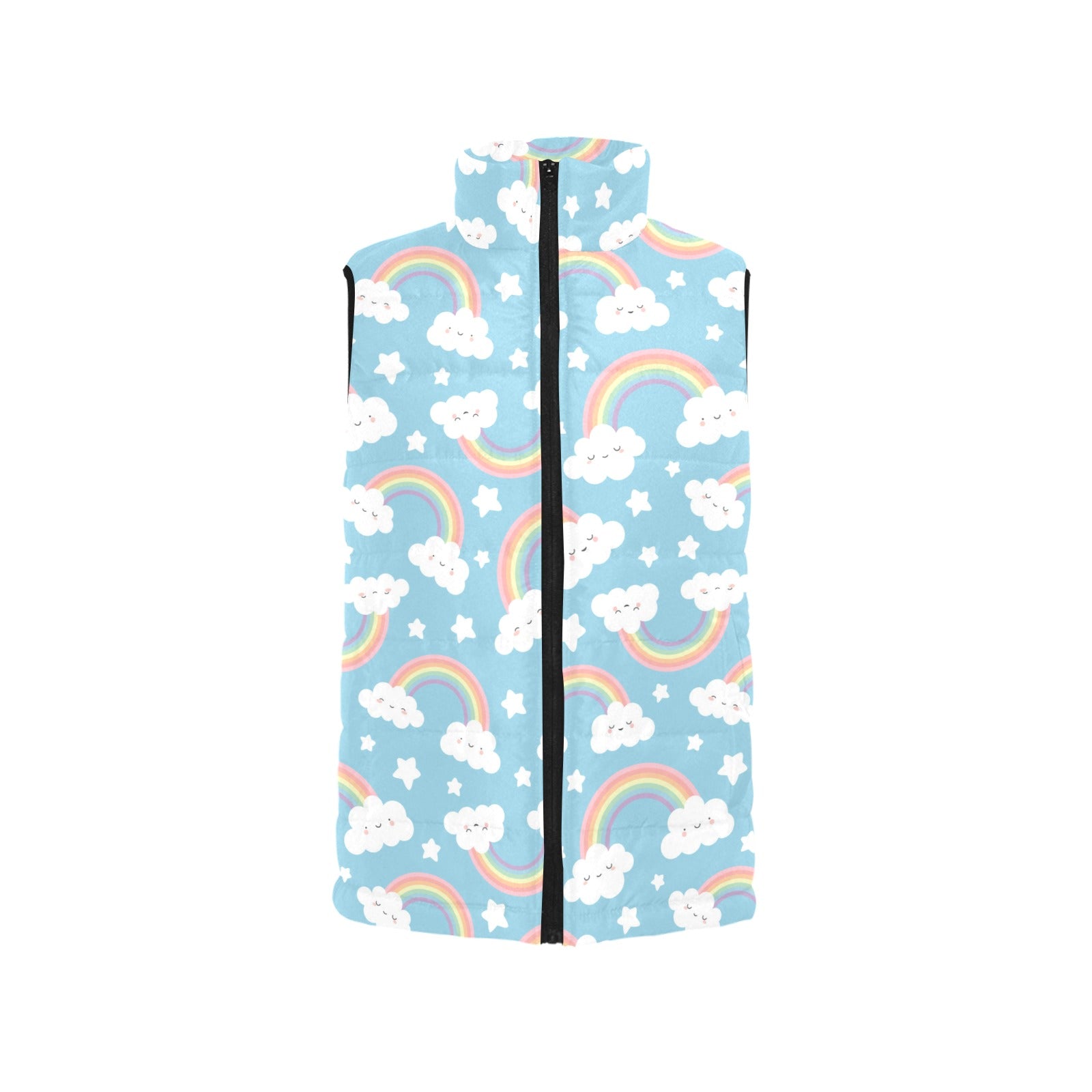 Cute rainbow clound star pattern blue background Women's Padded Vest