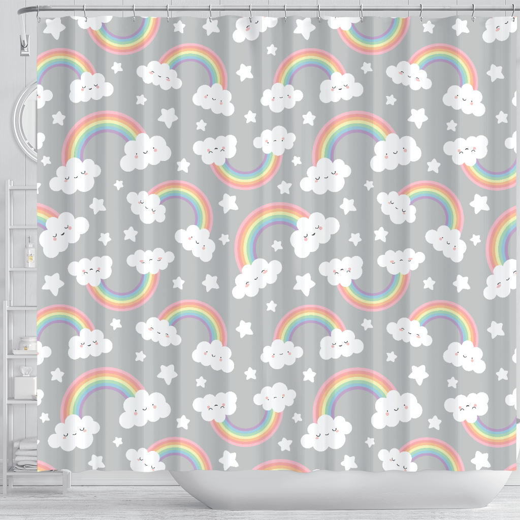 Cute Rainbow Clound Star Pattern Shower Curtain Fulfilled In US