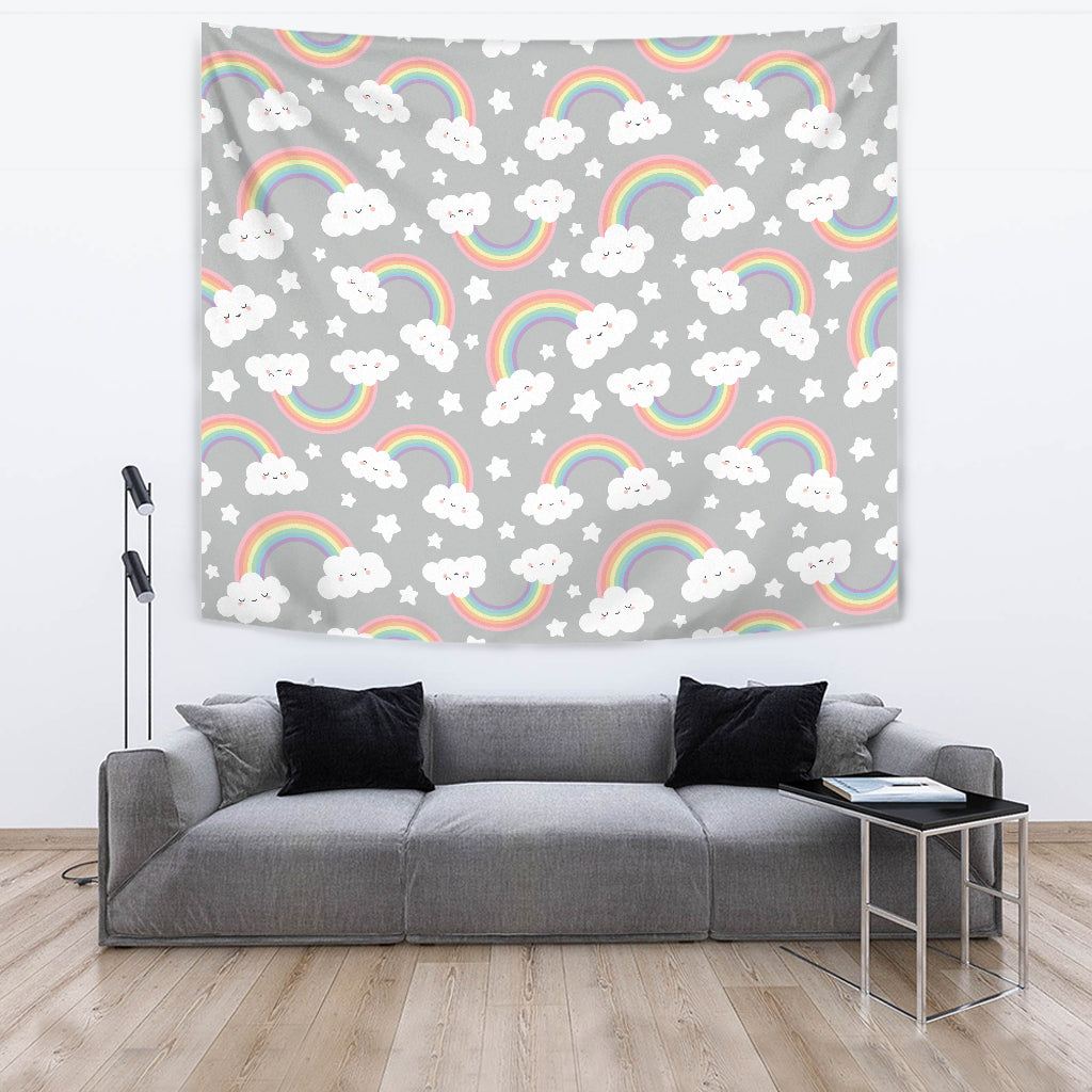 Cute rainbow clound star pattern Tapestry is a uniqued design and limited item. It made to order, hand printed, and sewn with love in our factory.