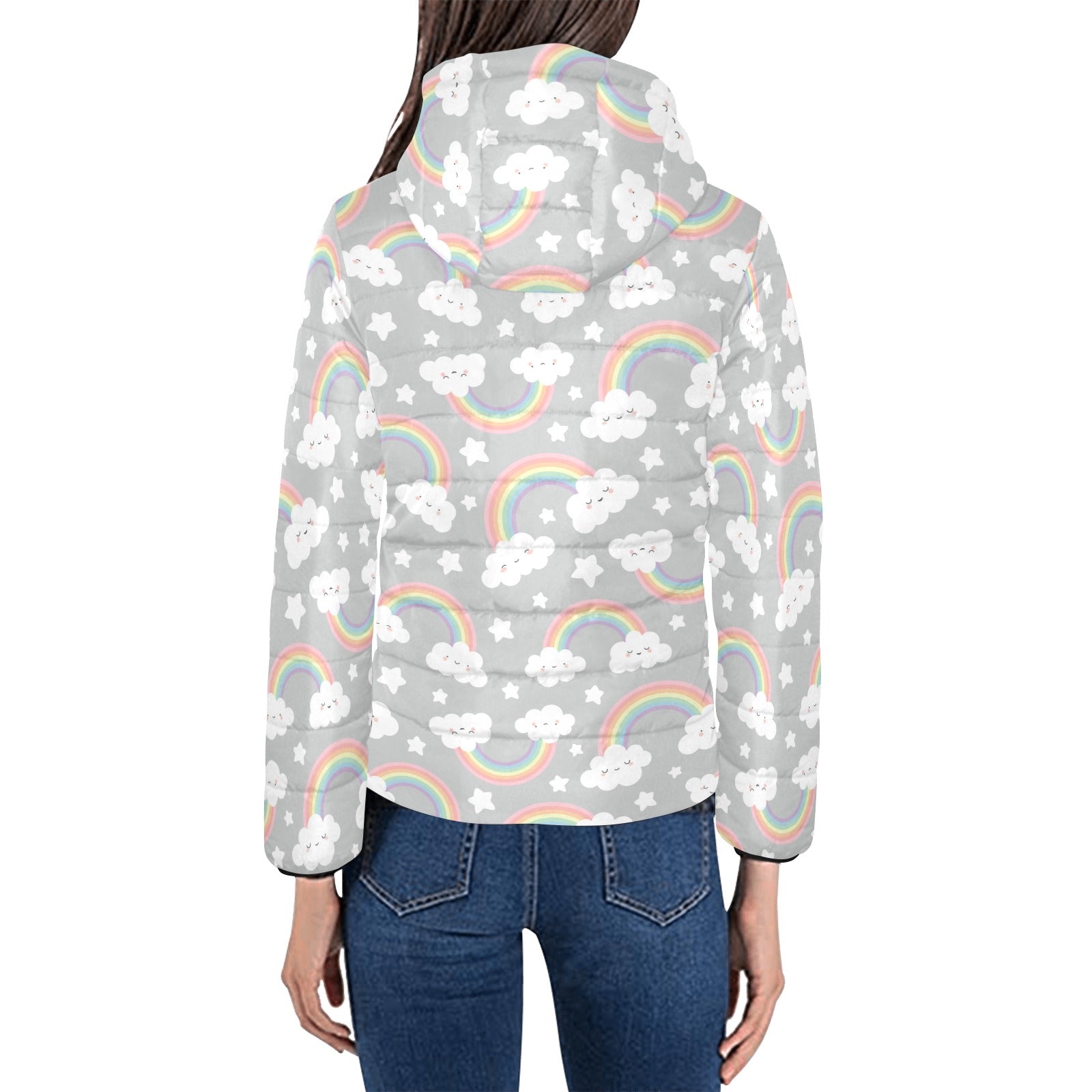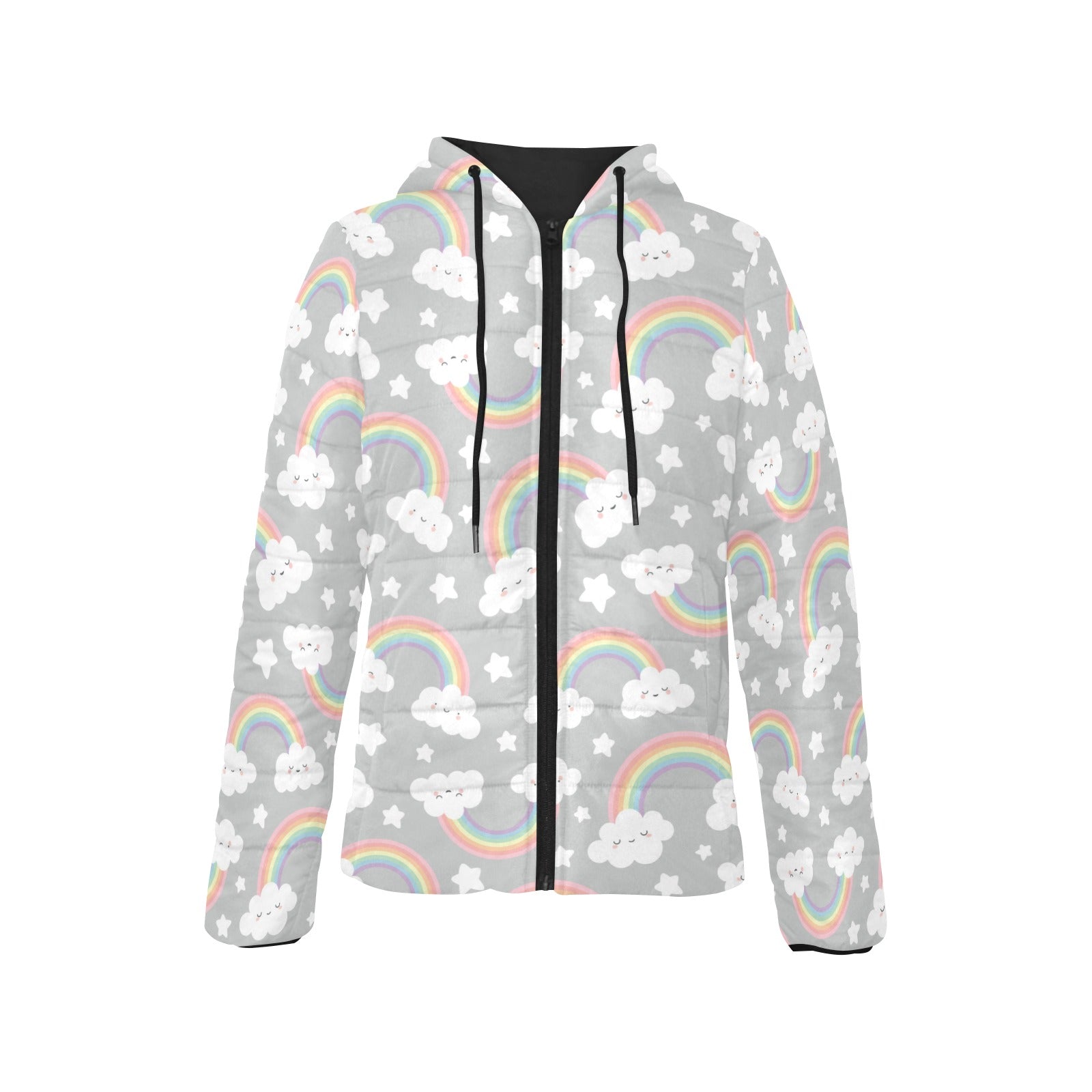 Cute rainbow clound star pattern Women's Padded Hooded Jacket
