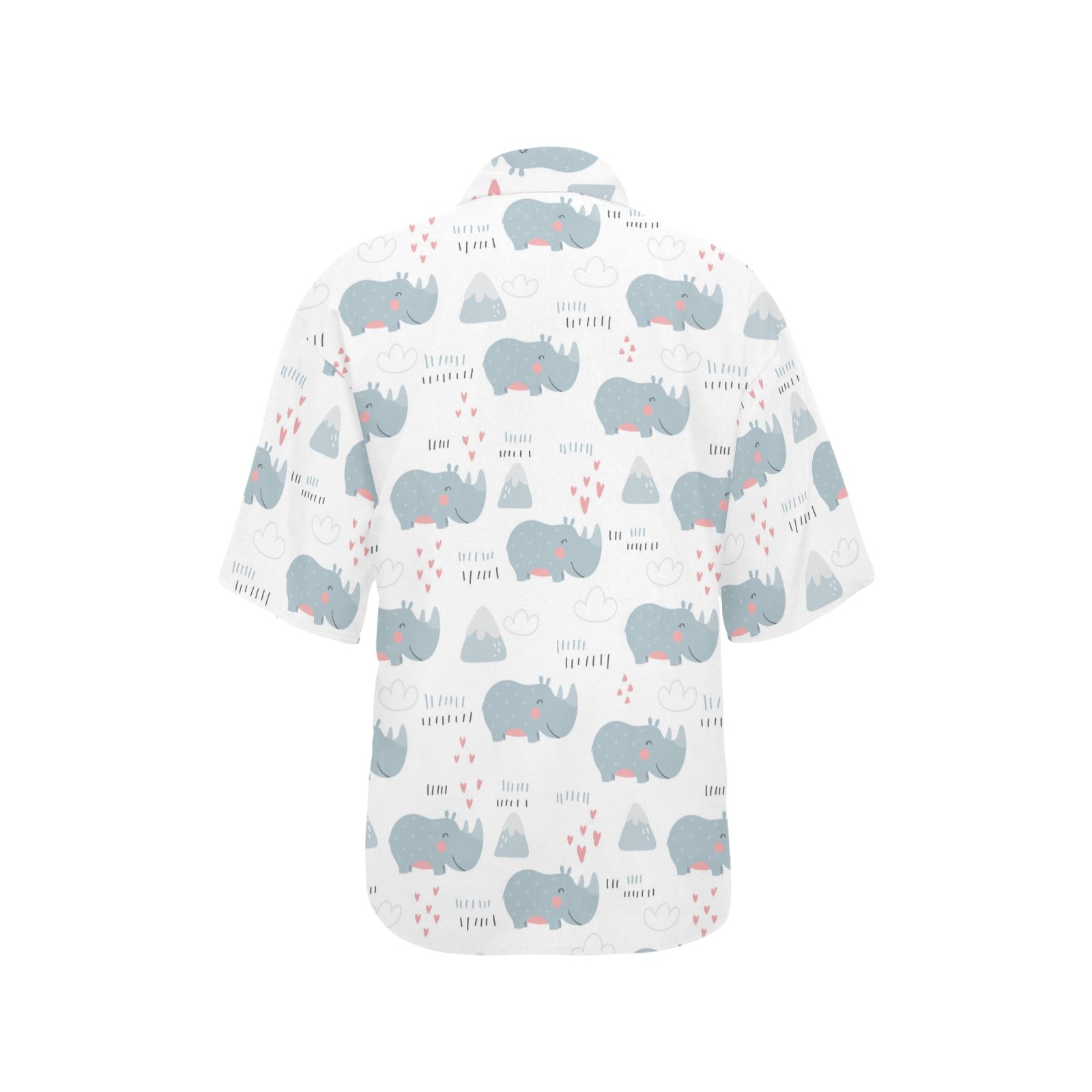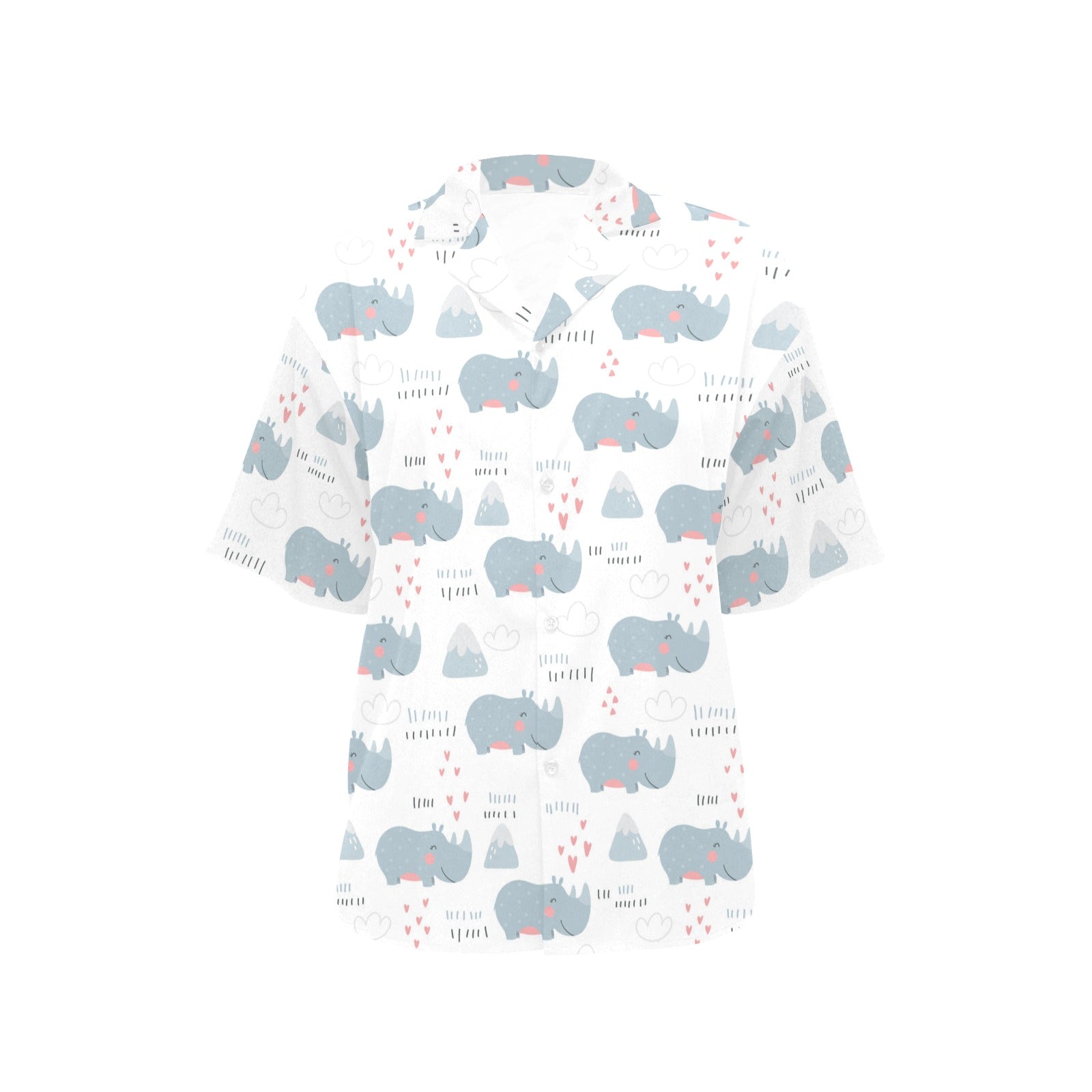cute rhino heart pattern Women's All Over Print Hawaiian Shirt