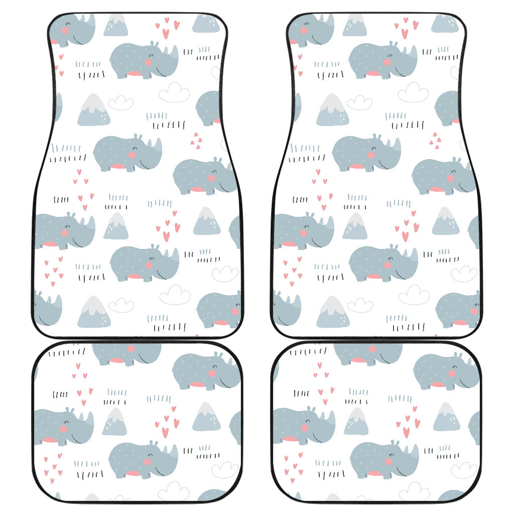 Cute Rhino Heart Pattern Front And Back Car Mats