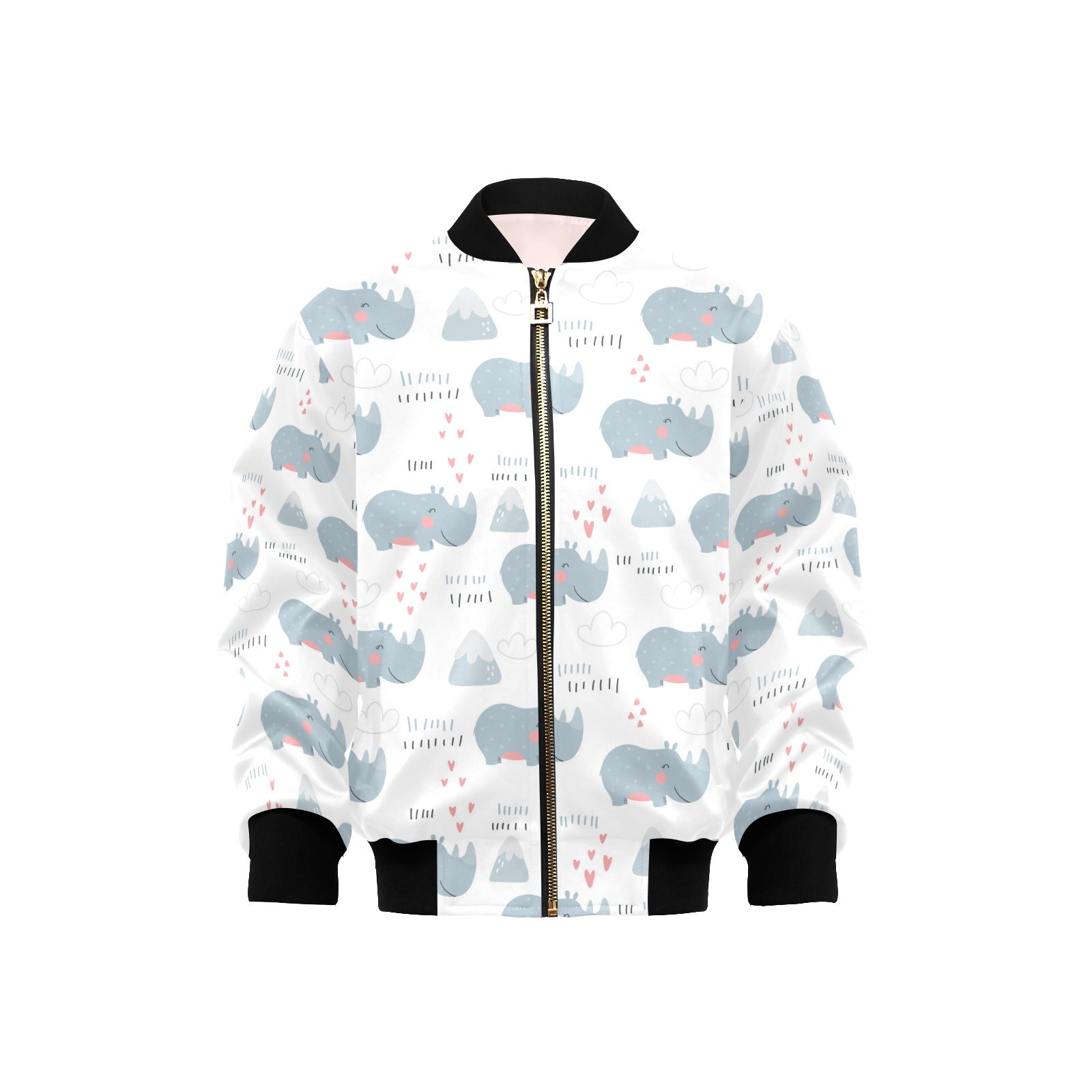 cute rhino heart pattern Kids' Boys' Girls' Bomber Jacket