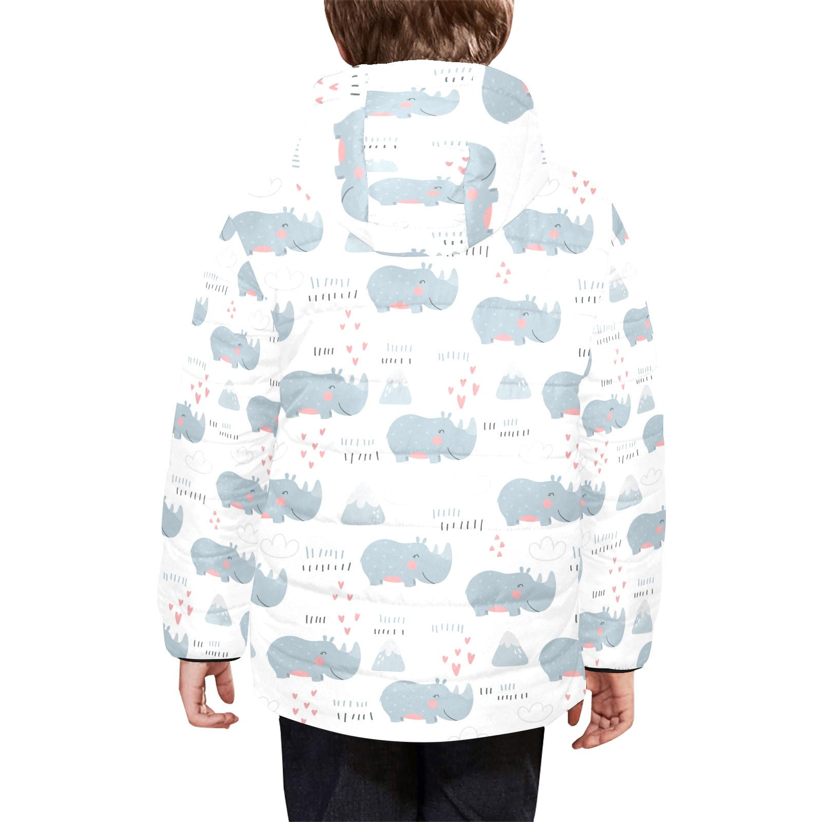 cute rhino heart pattern Kids' Boys' Girls' Padded Hooded Jacket