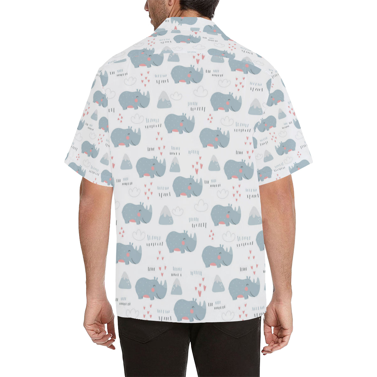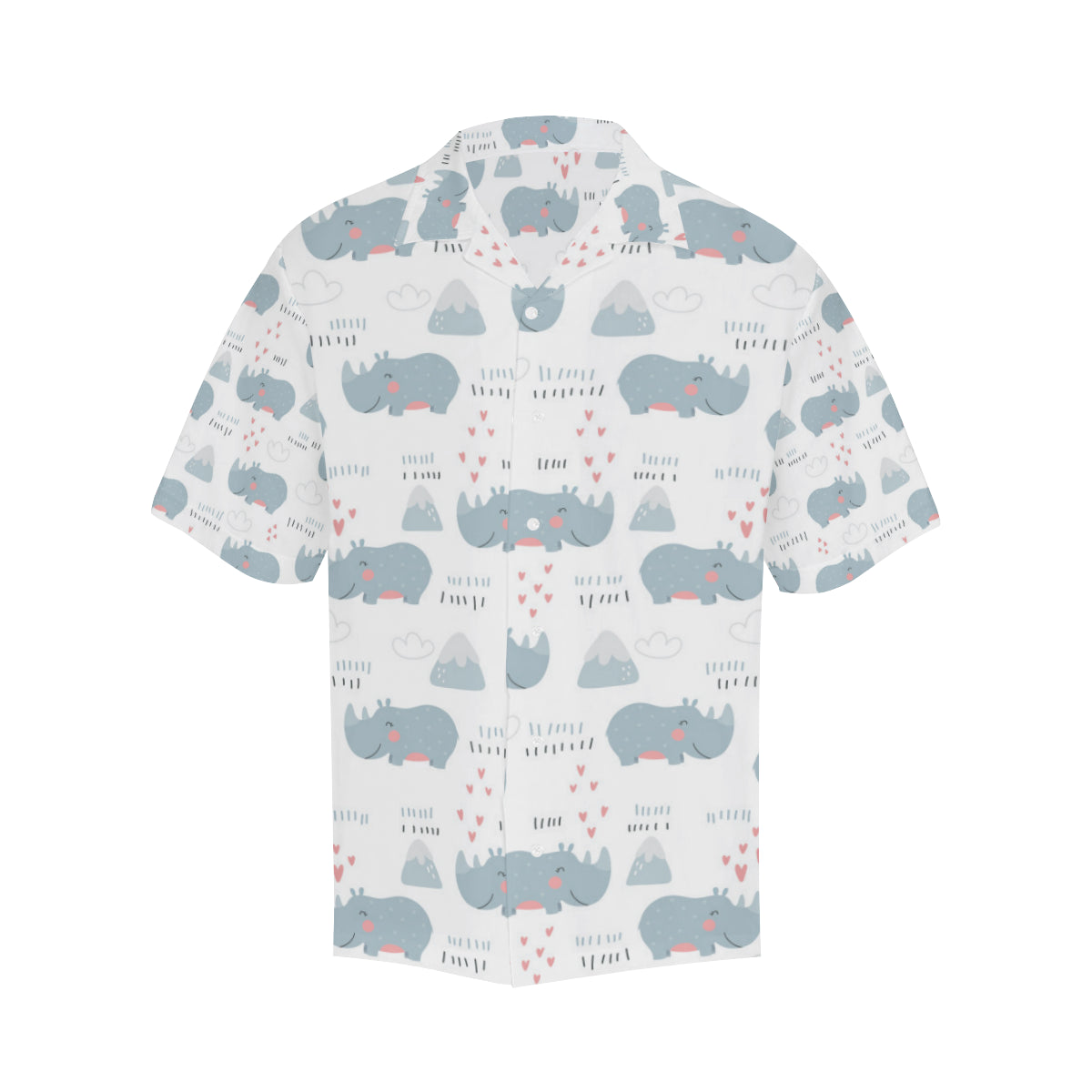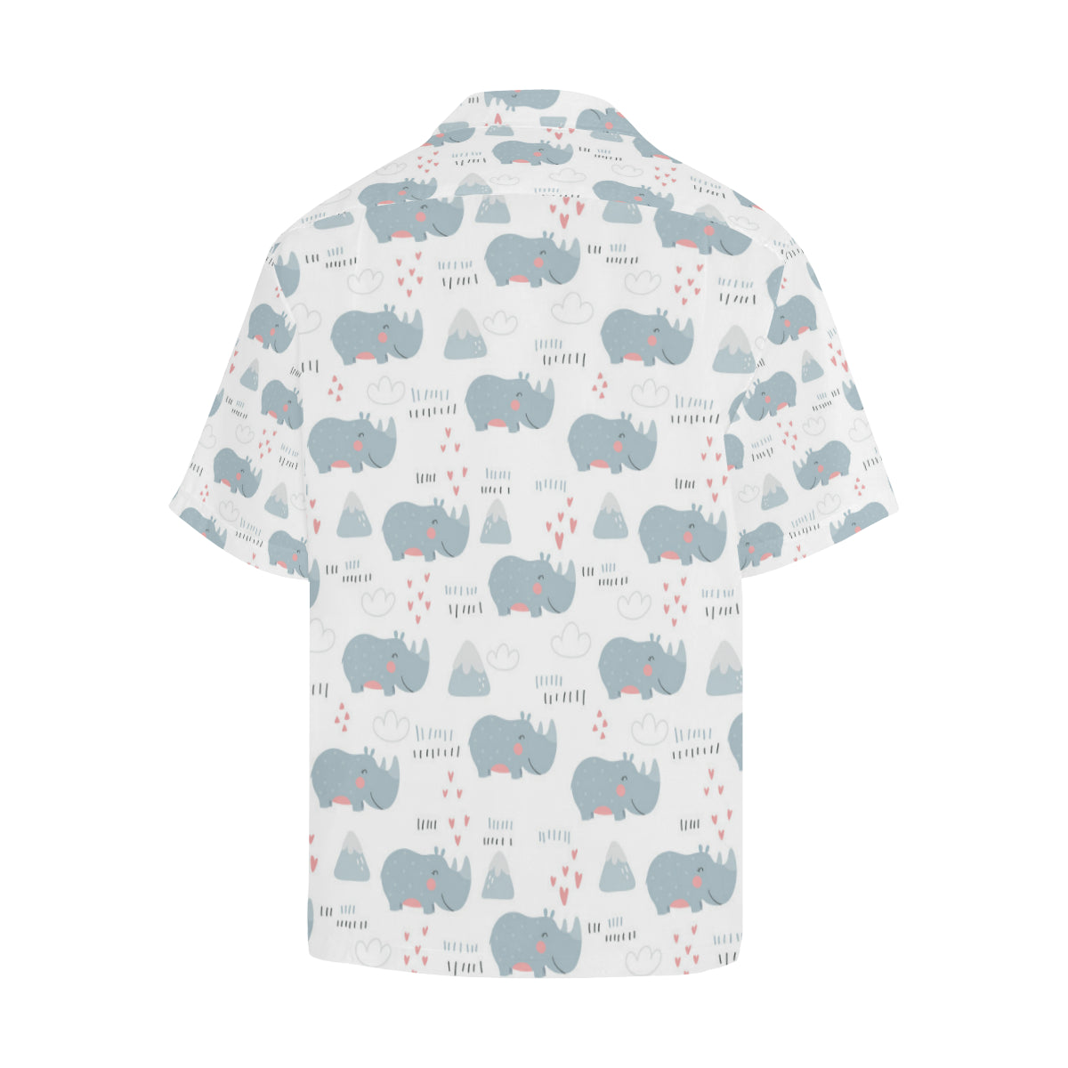 cute rhino heart pattern Men's All Over Print Hawaiian Shirt is a uniqued design and limited item. It made to order, hand printed, and sewn with love in our factory.