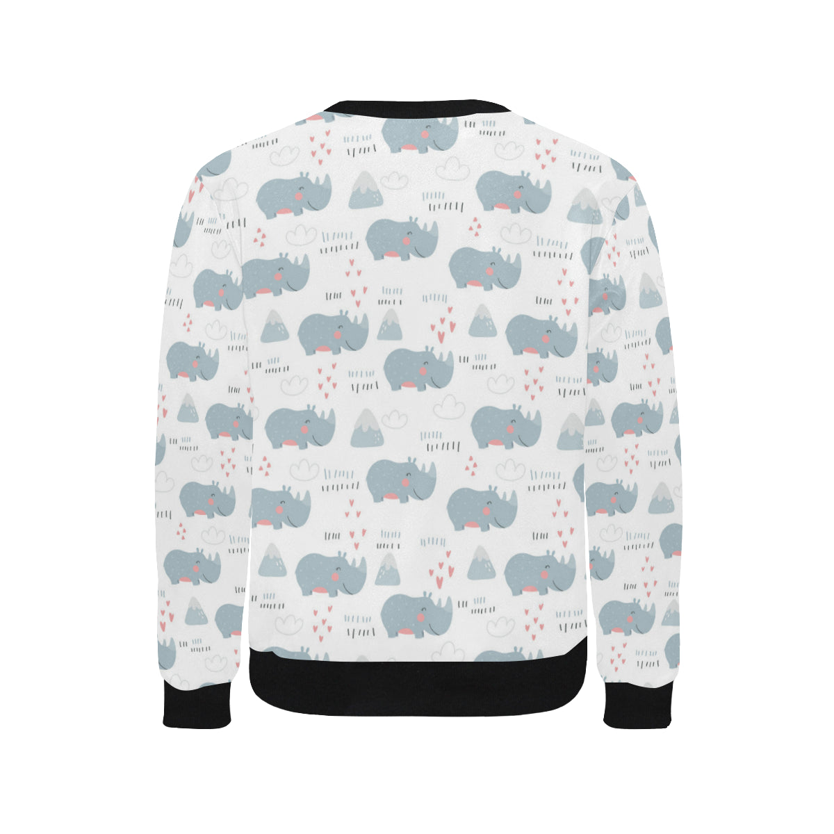 cute rhino heart pattern Men's Crew Neck Sweatshirt
