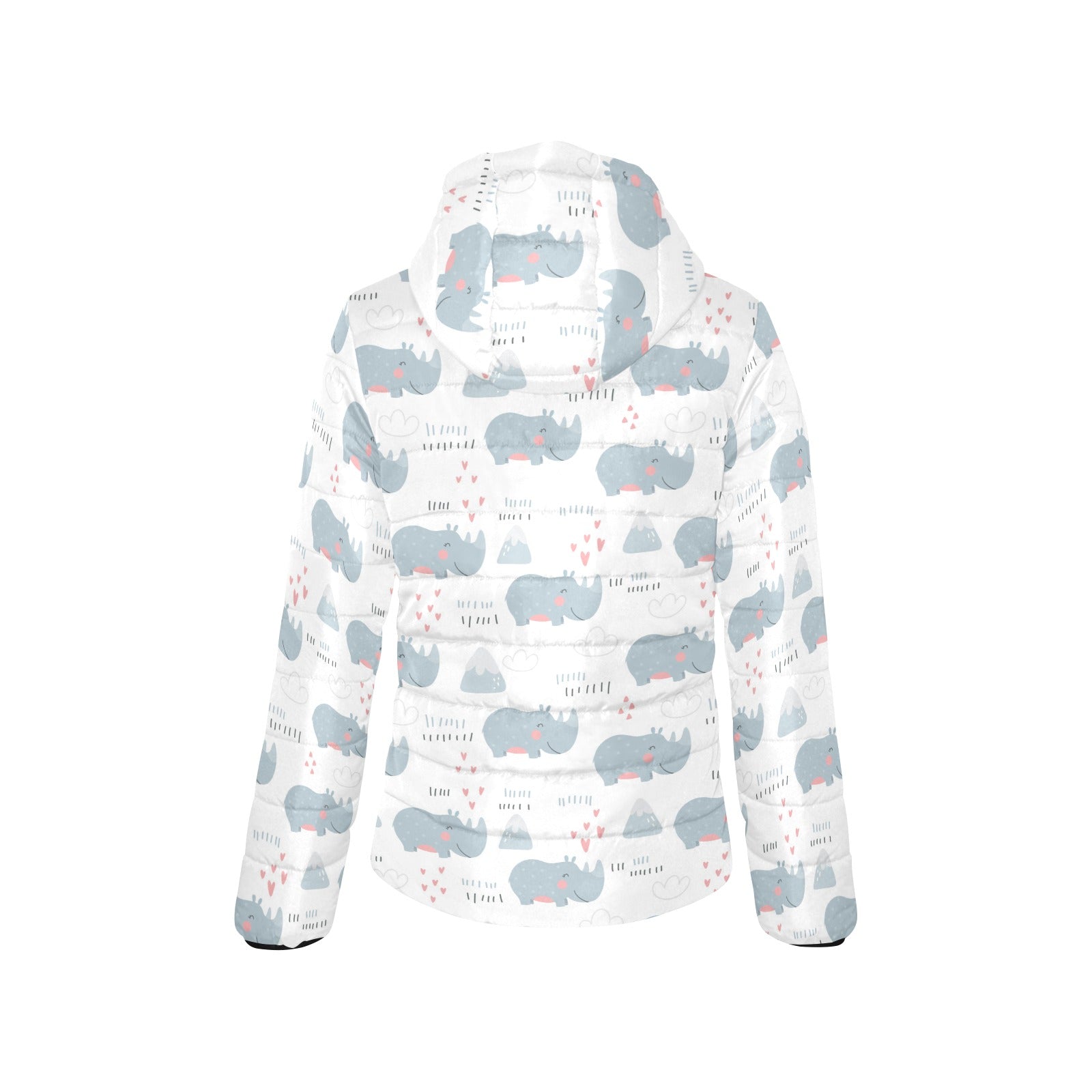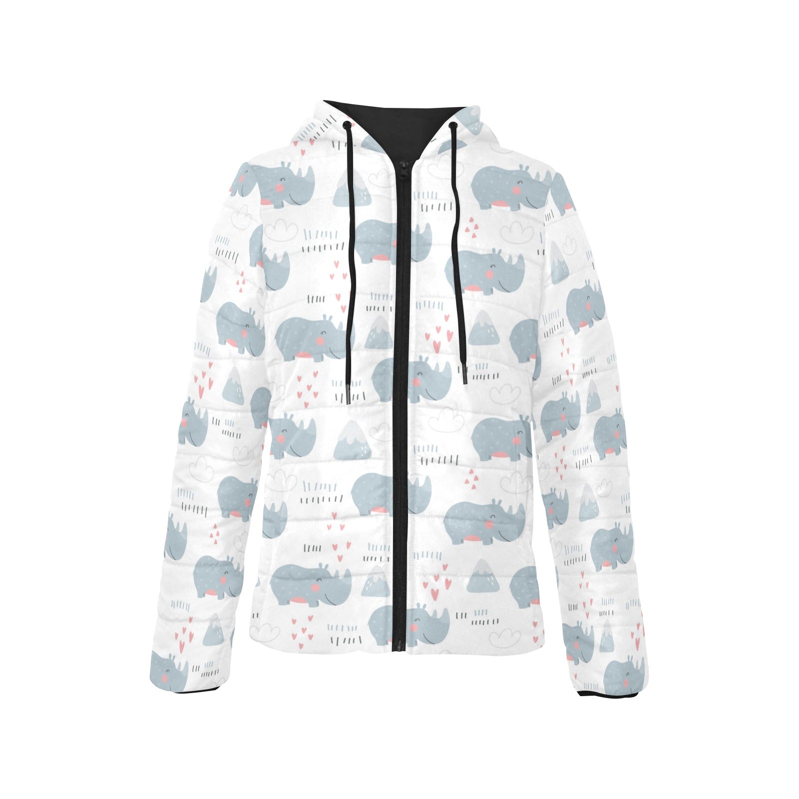 cute rhino heart pattern Women's Padded Hooded Jacket