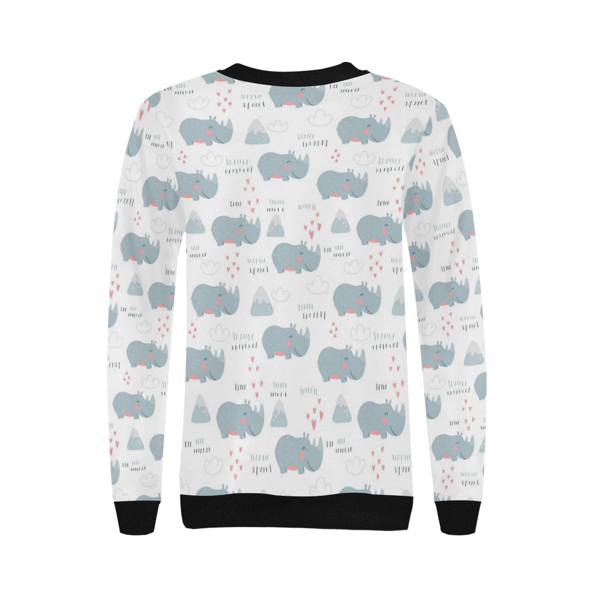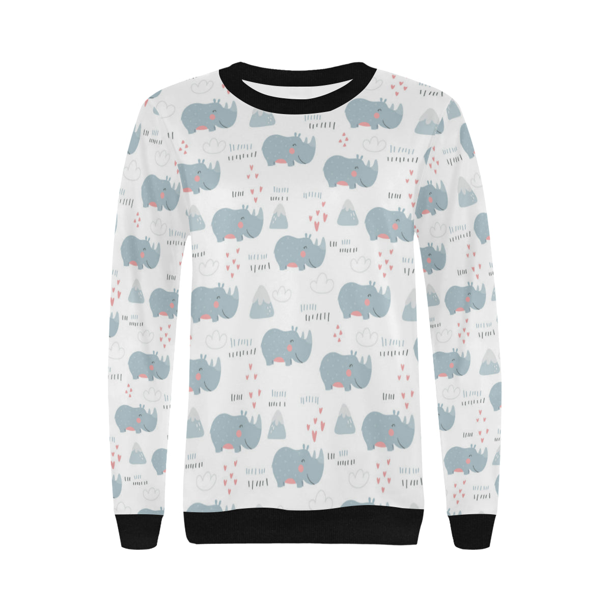 cute rhino heart pattern Women's Crew Neck Sweatshirt