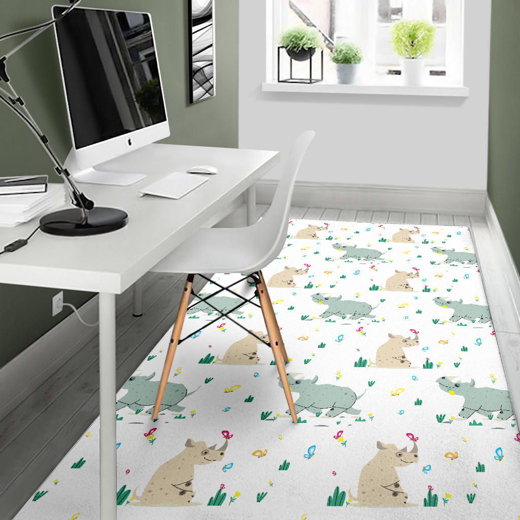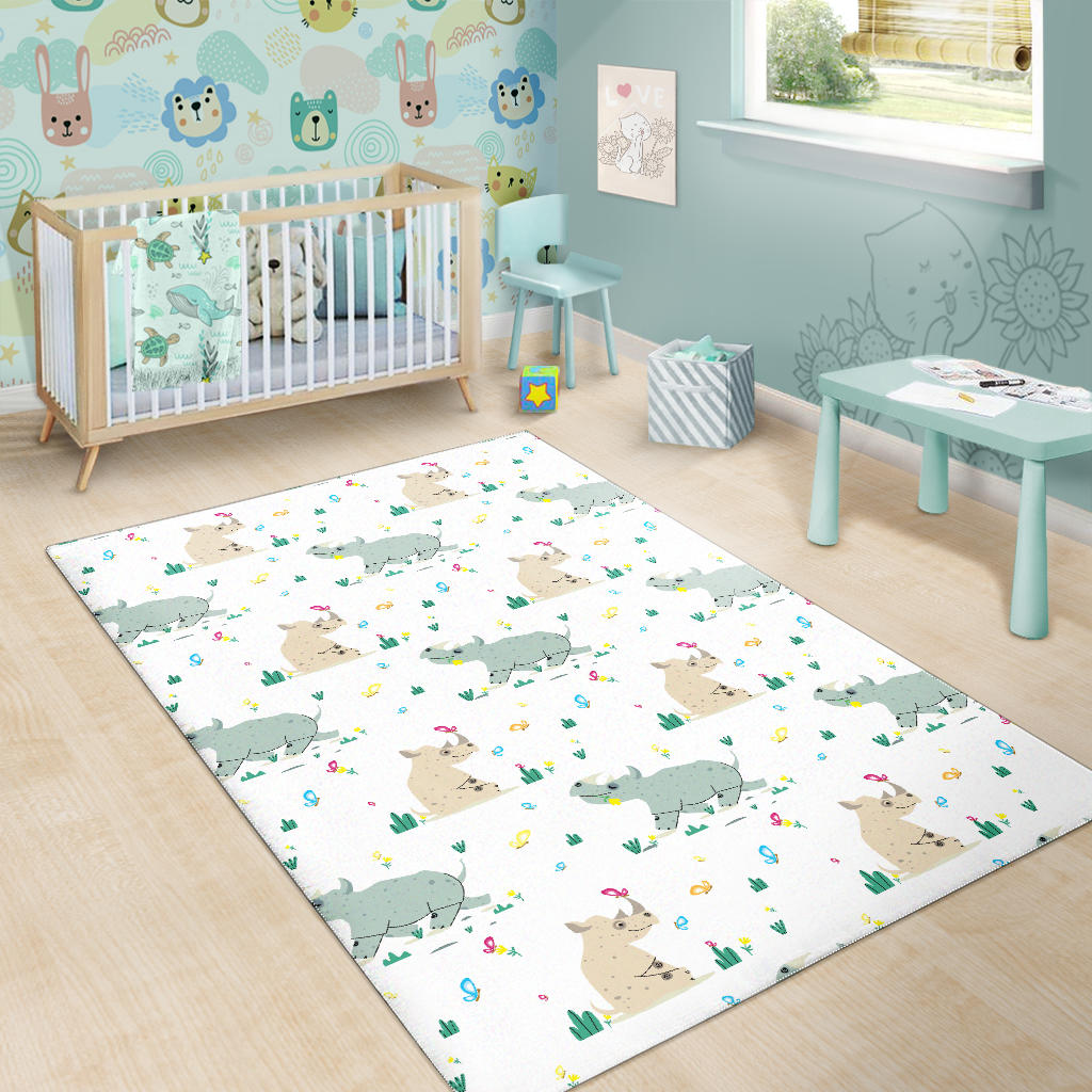 Cute Rhino pattern Area Rug is a uniqued design and limited item. It made to order, hand printed, and sewn with love in our factory.