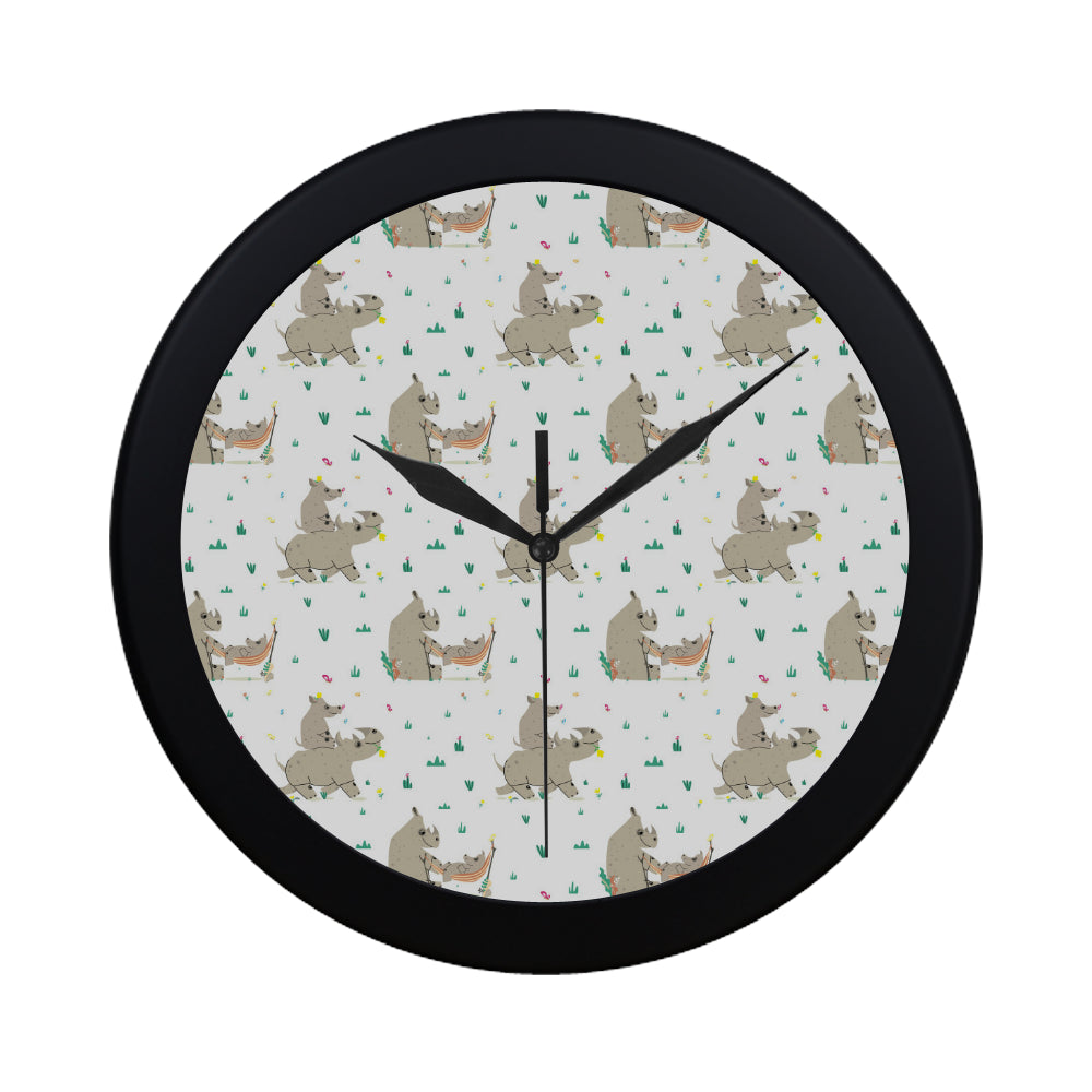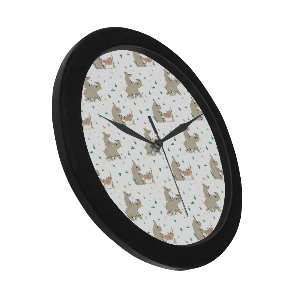 Cute Rhino pattern background Elegant Black Wall Clock is a uniqued design and limited item. It made to order, hand printed, and sewn with love in our factory.