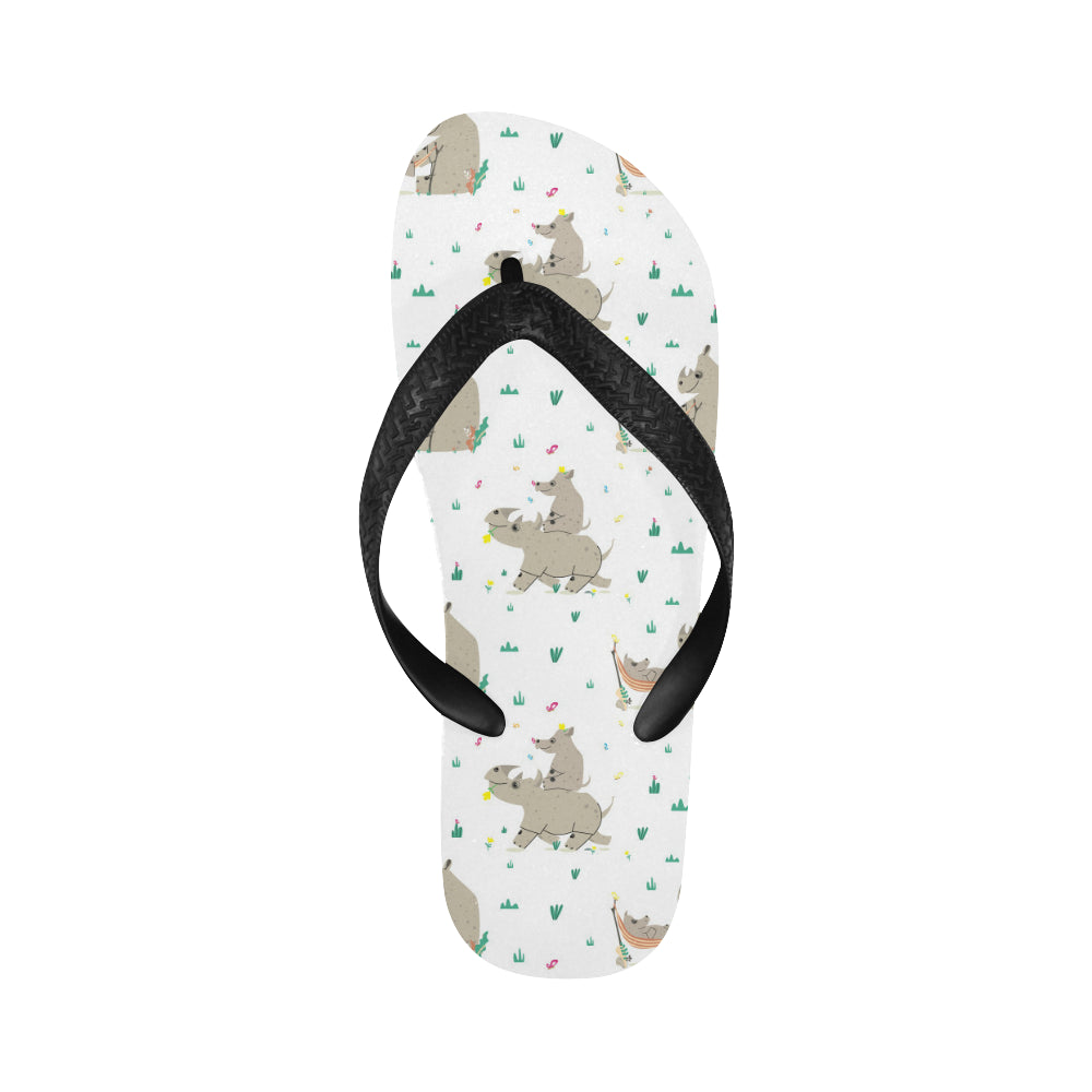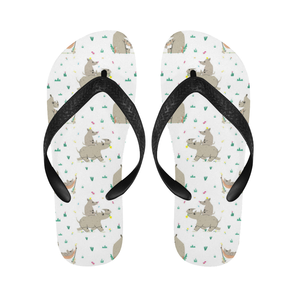 Cute Rhino pattern background Unisex Flip Flops is a uniqued design and limited item. It made to order, hand printed, and sewn with love in our factory.