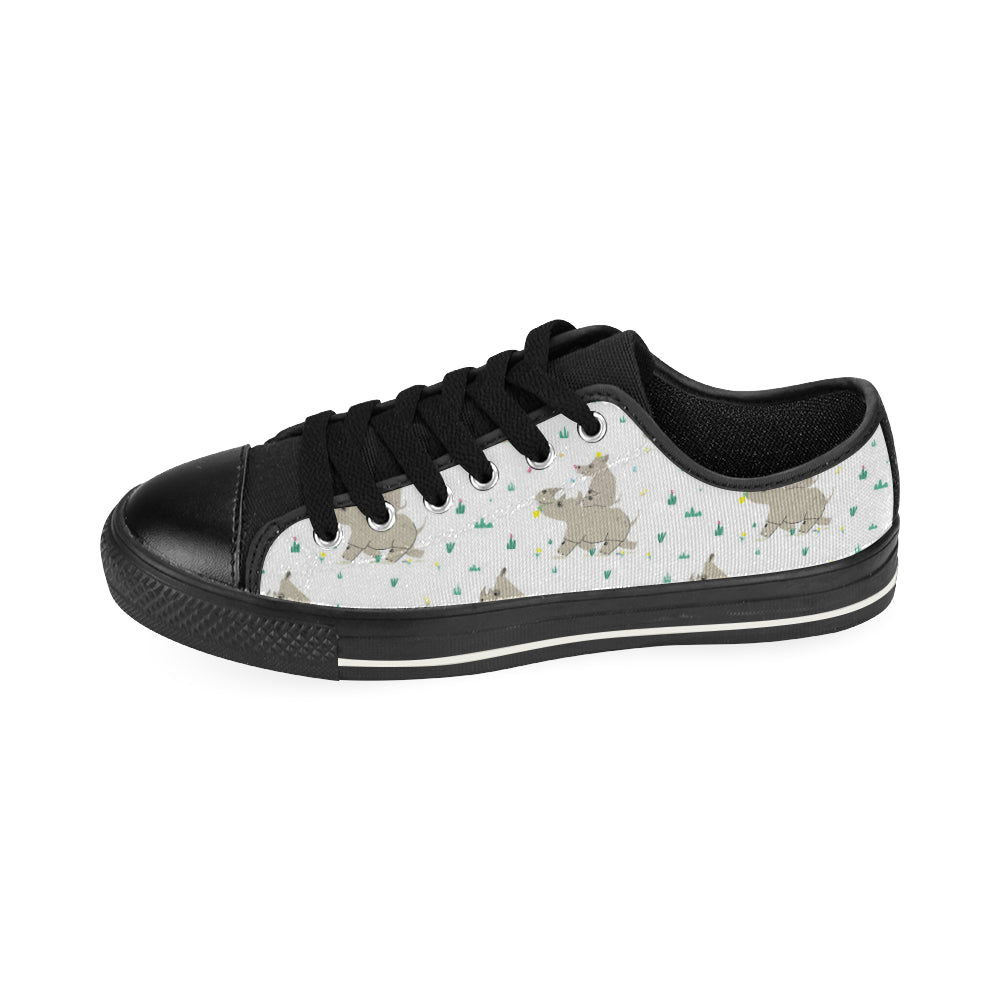 Cute Rhino pattern background Men's Low Top Canvas Shoes Black