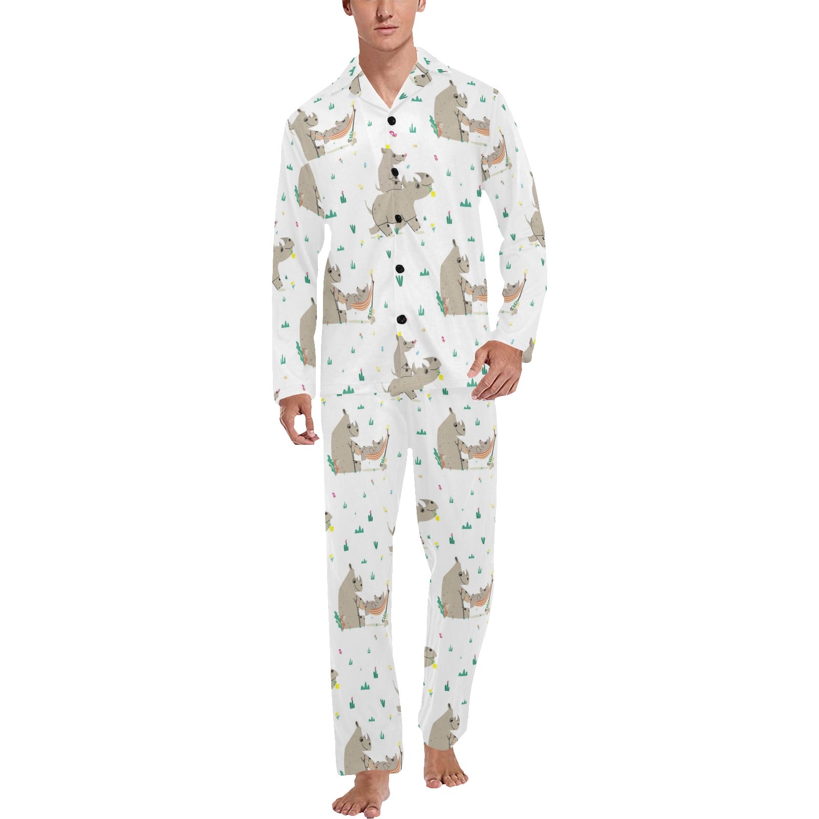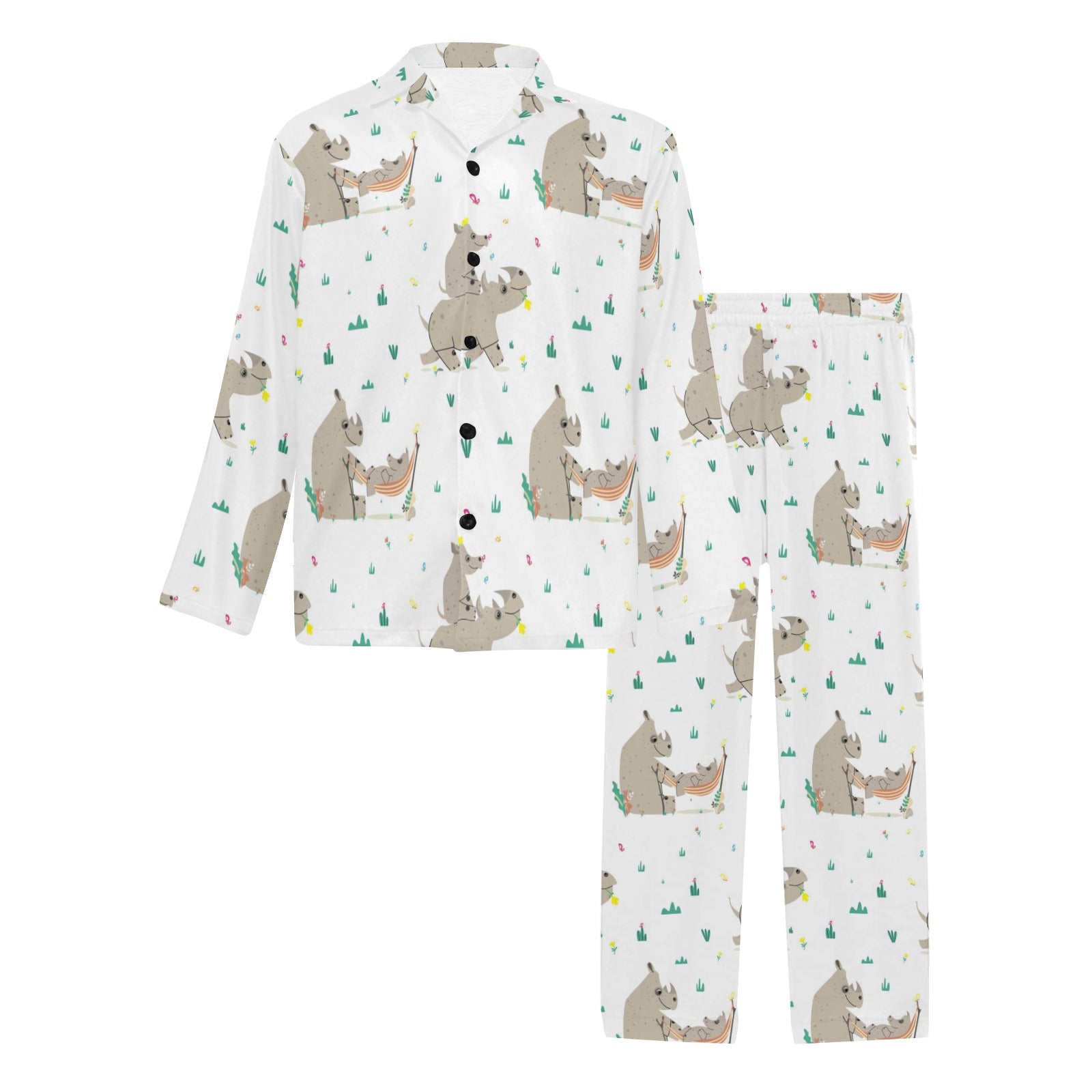 Cute Rhino pattern background Men's Long Pajama Set