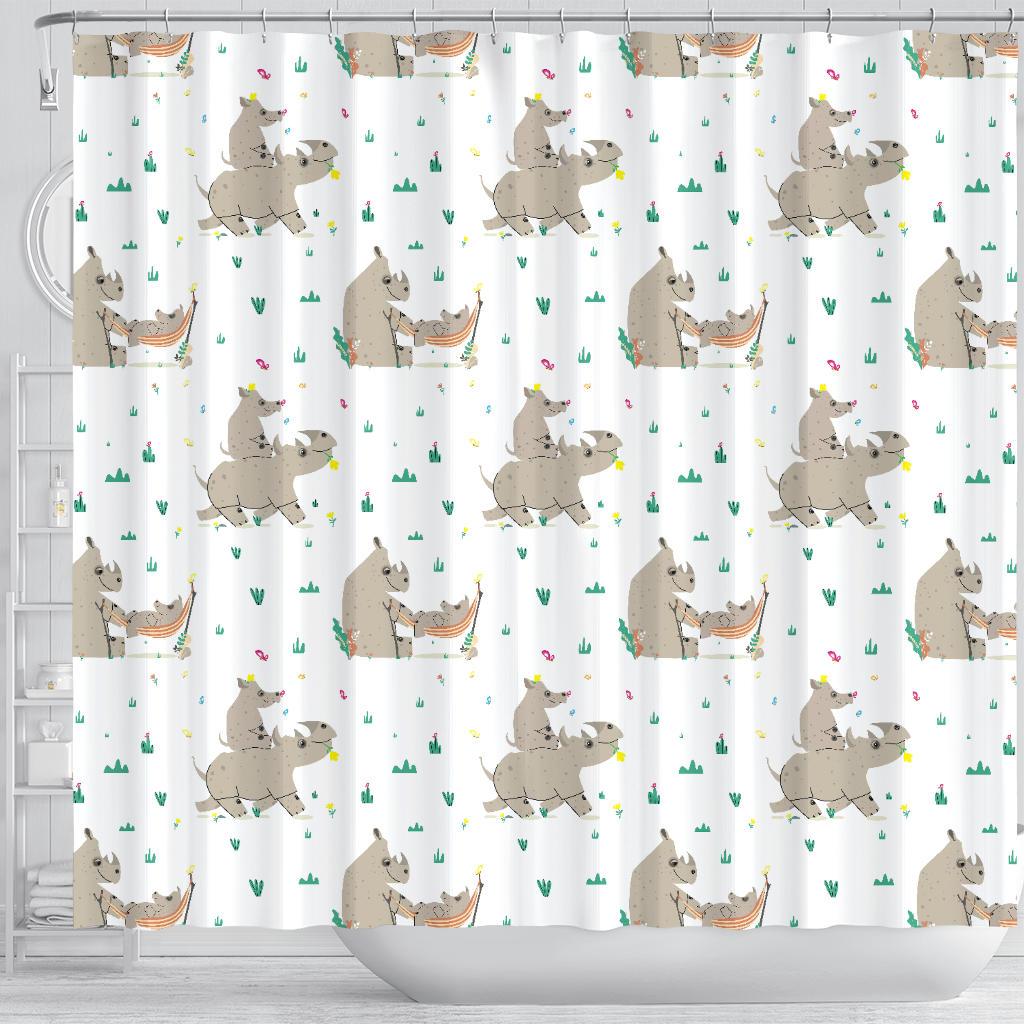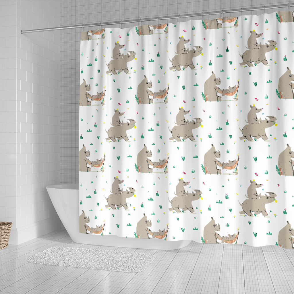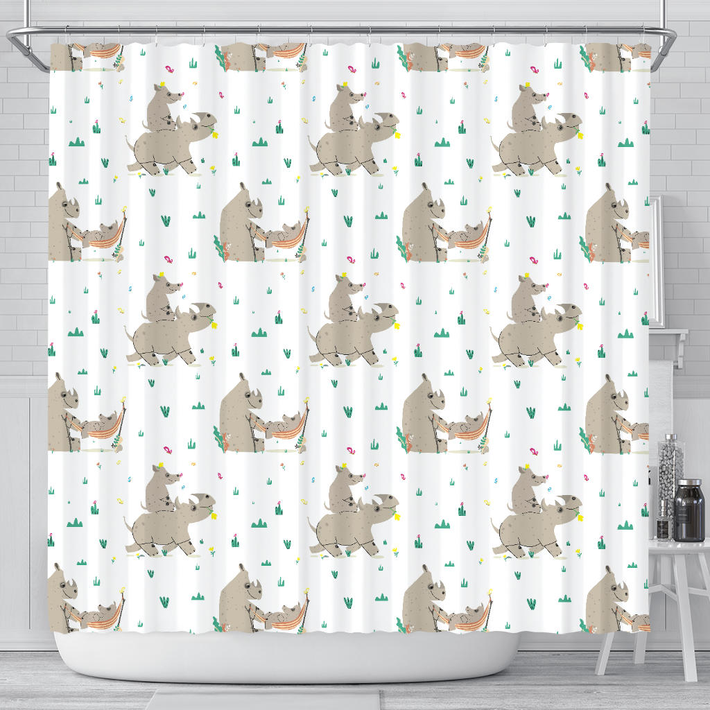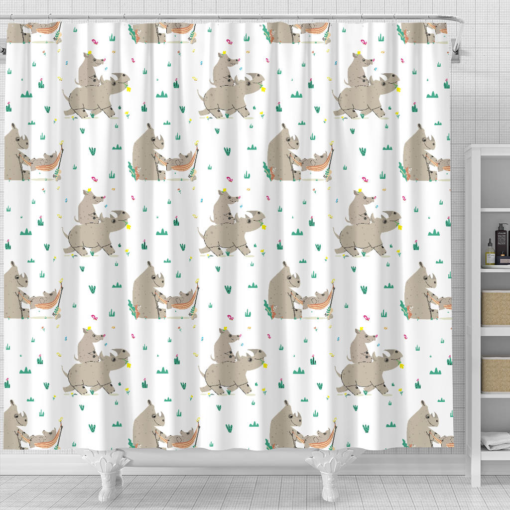 Cute Rhino Pattern Background Shower Curtain Fulfilled In US