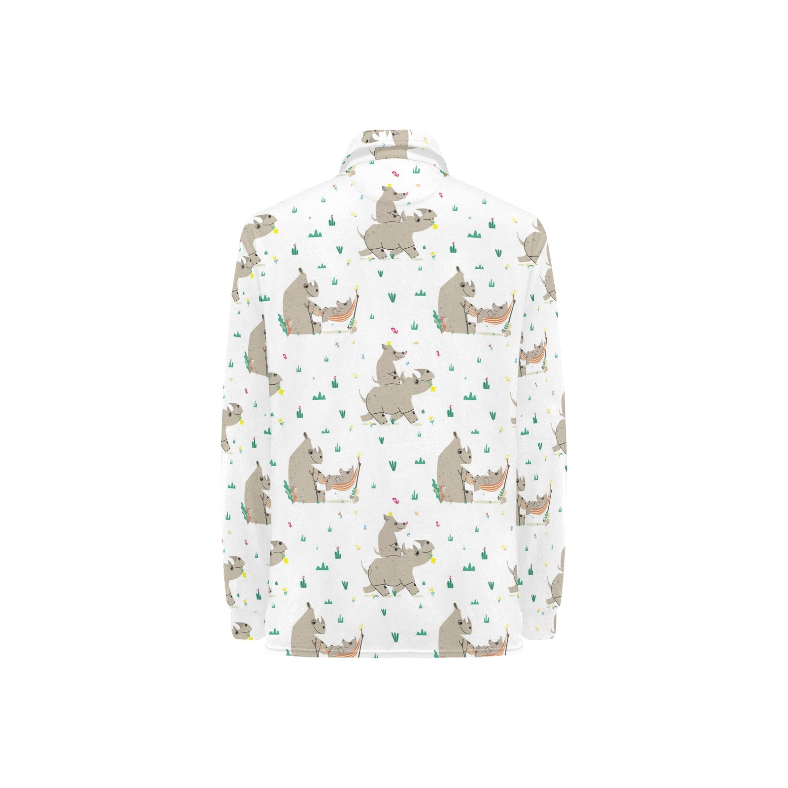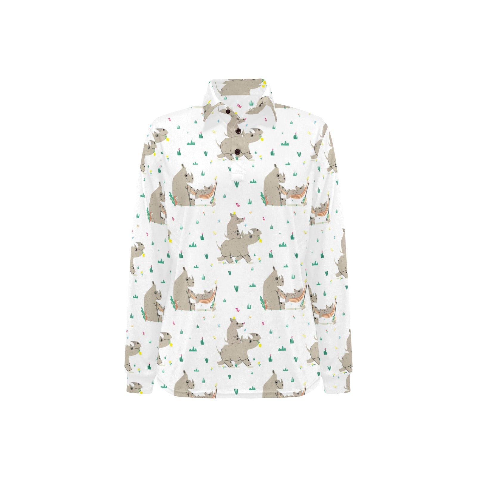 Cute Rhino pattern background Women's Long Sleeve Polo Shirt