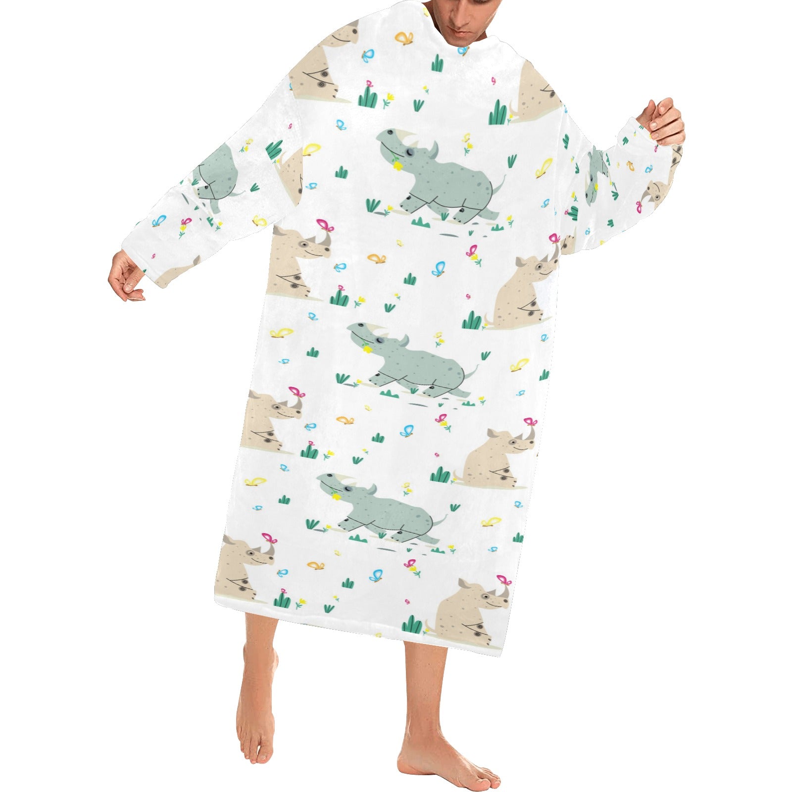 Cute Rhino pattern Blanket Robe with Sleeves