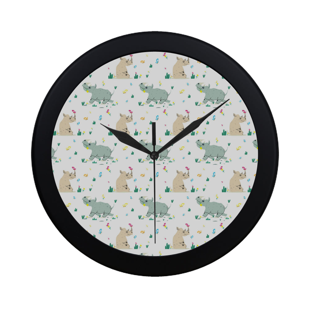 Cute Rhino pattern Elegant Black Wall Clock