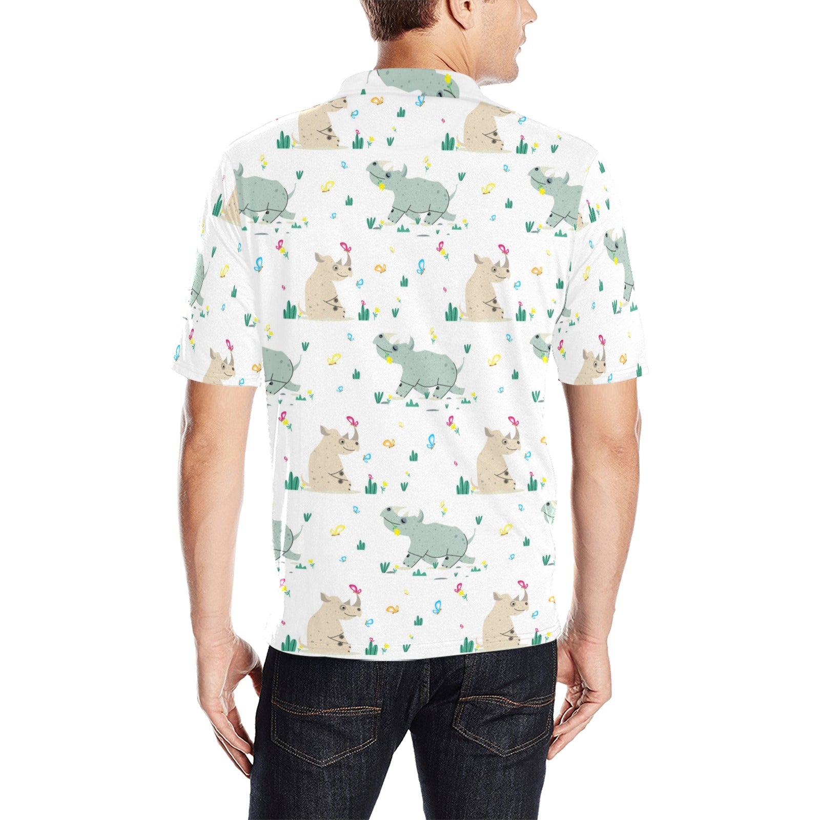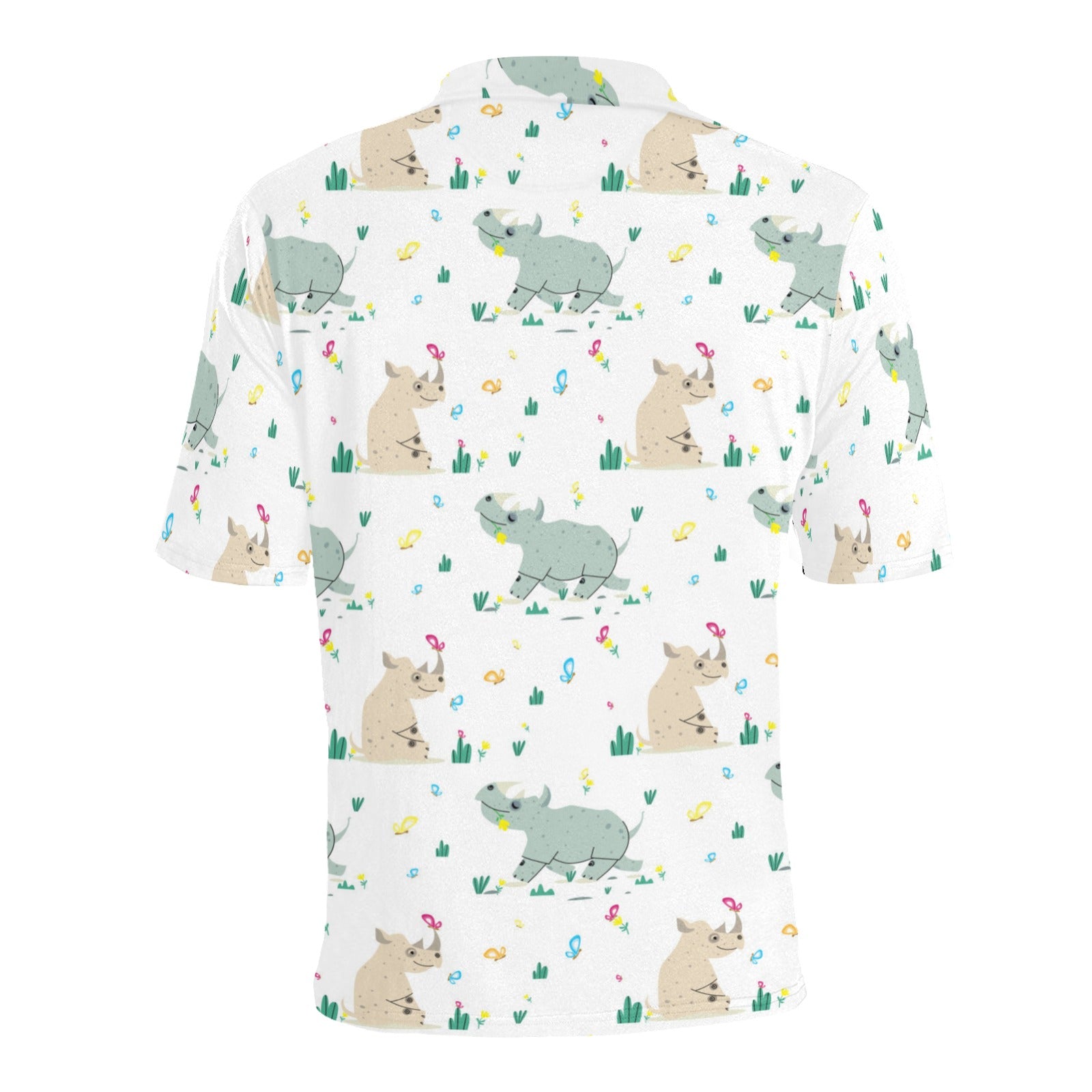 Cute Rhino pattern Men's All Over Print Polo Shirt
