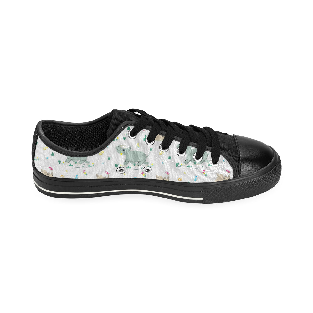 Cute Rhino pattern Men's Low Top Canvas Shoes Black