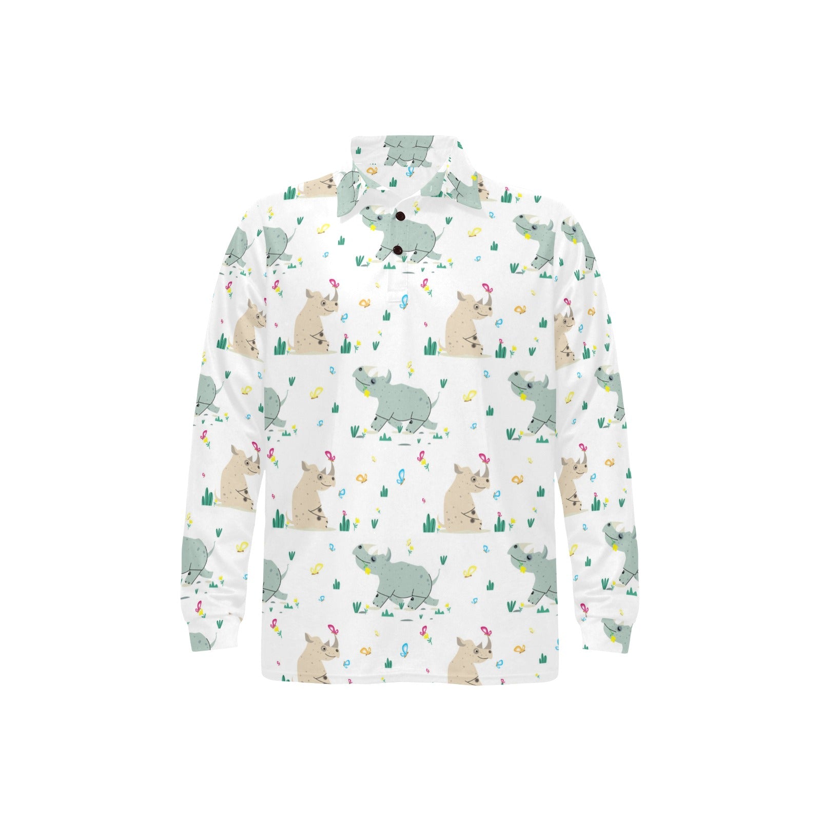 Cute Rhino pattern Men's Long Sleeve Polo Shirt