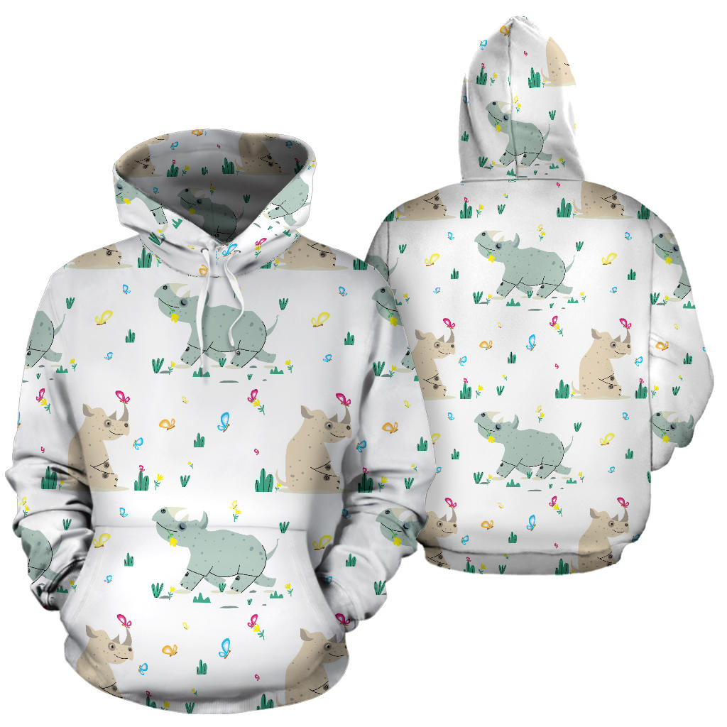 Cute Rhino Pattern Men Women Pullover Hoodie