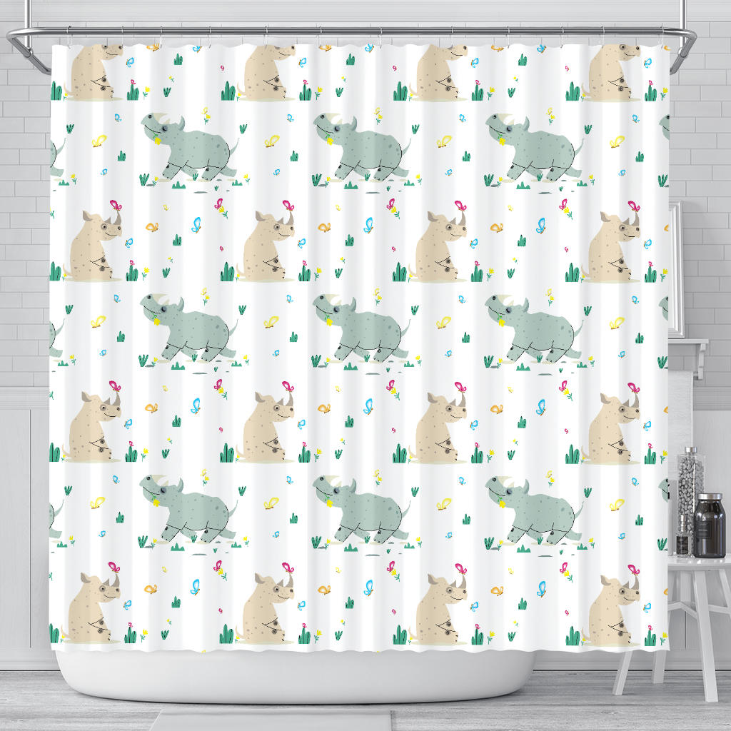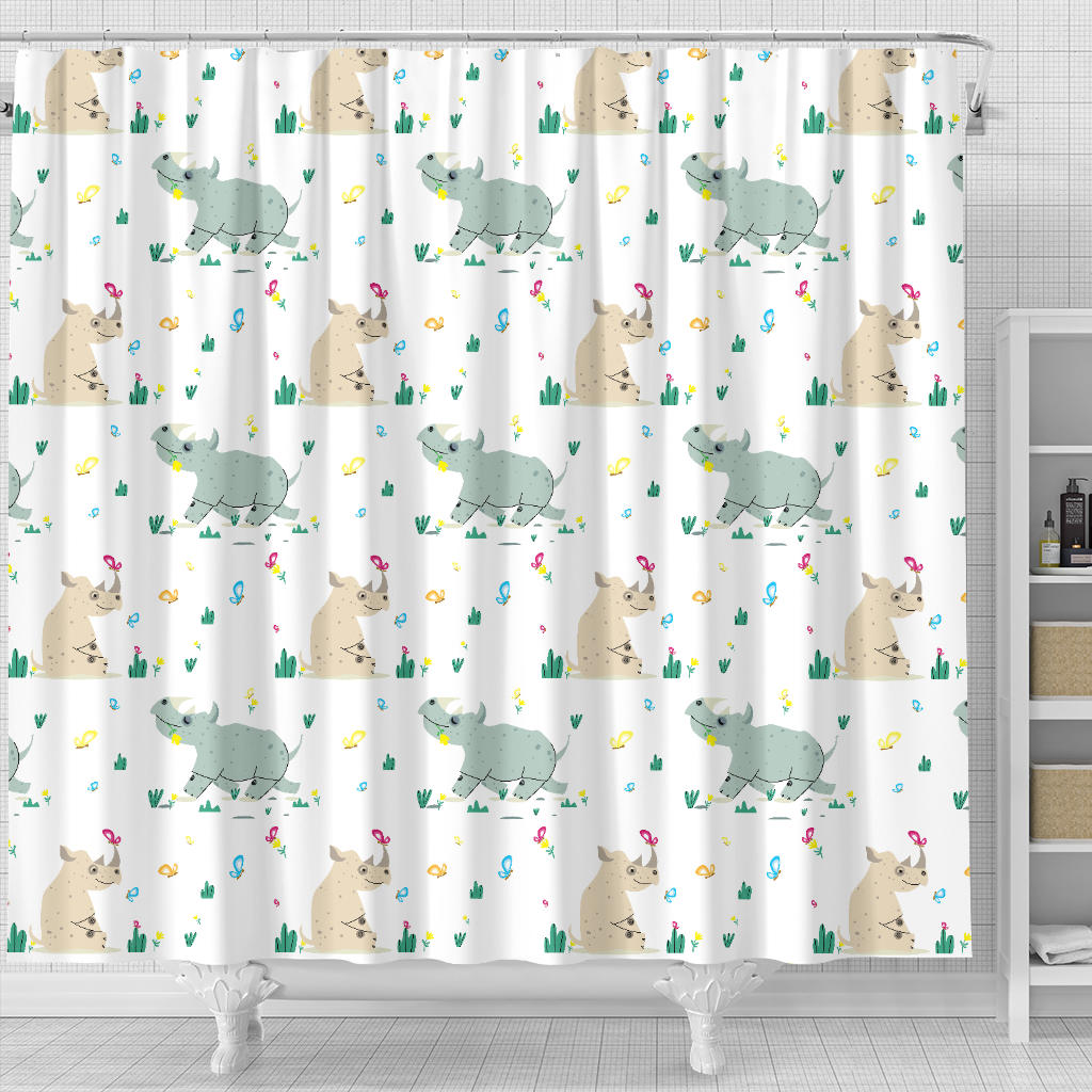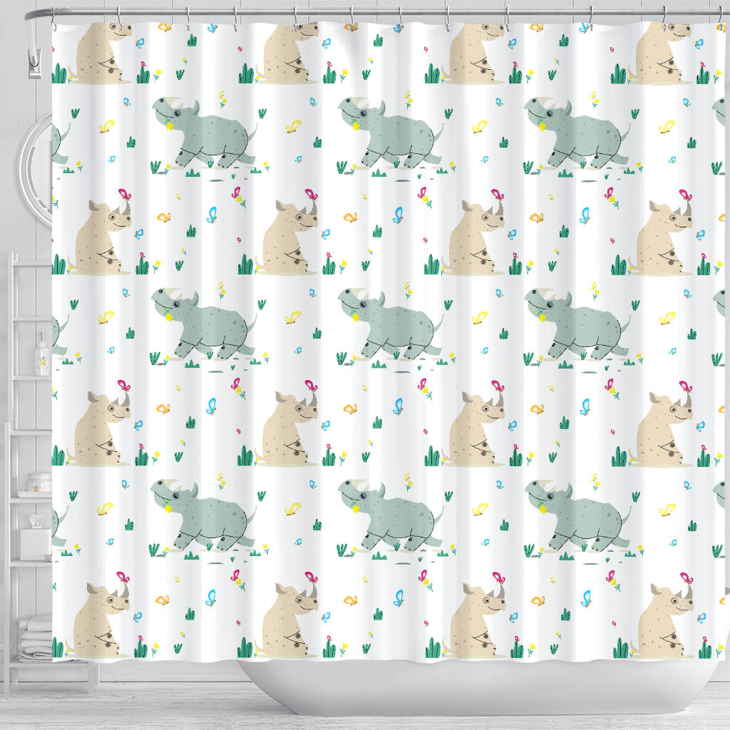 Cute Rhino Pattern Shower Curtain Fulfilled In US