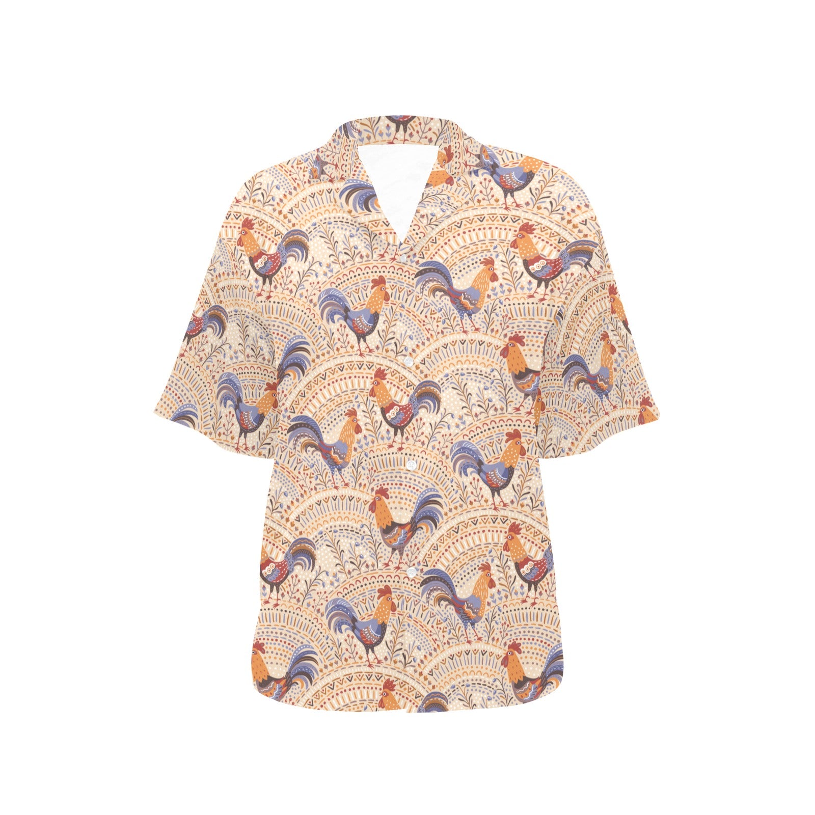 Cute rooster chicken cock floral ornament backgrou Women's All Over Print Hawaiian Shirt