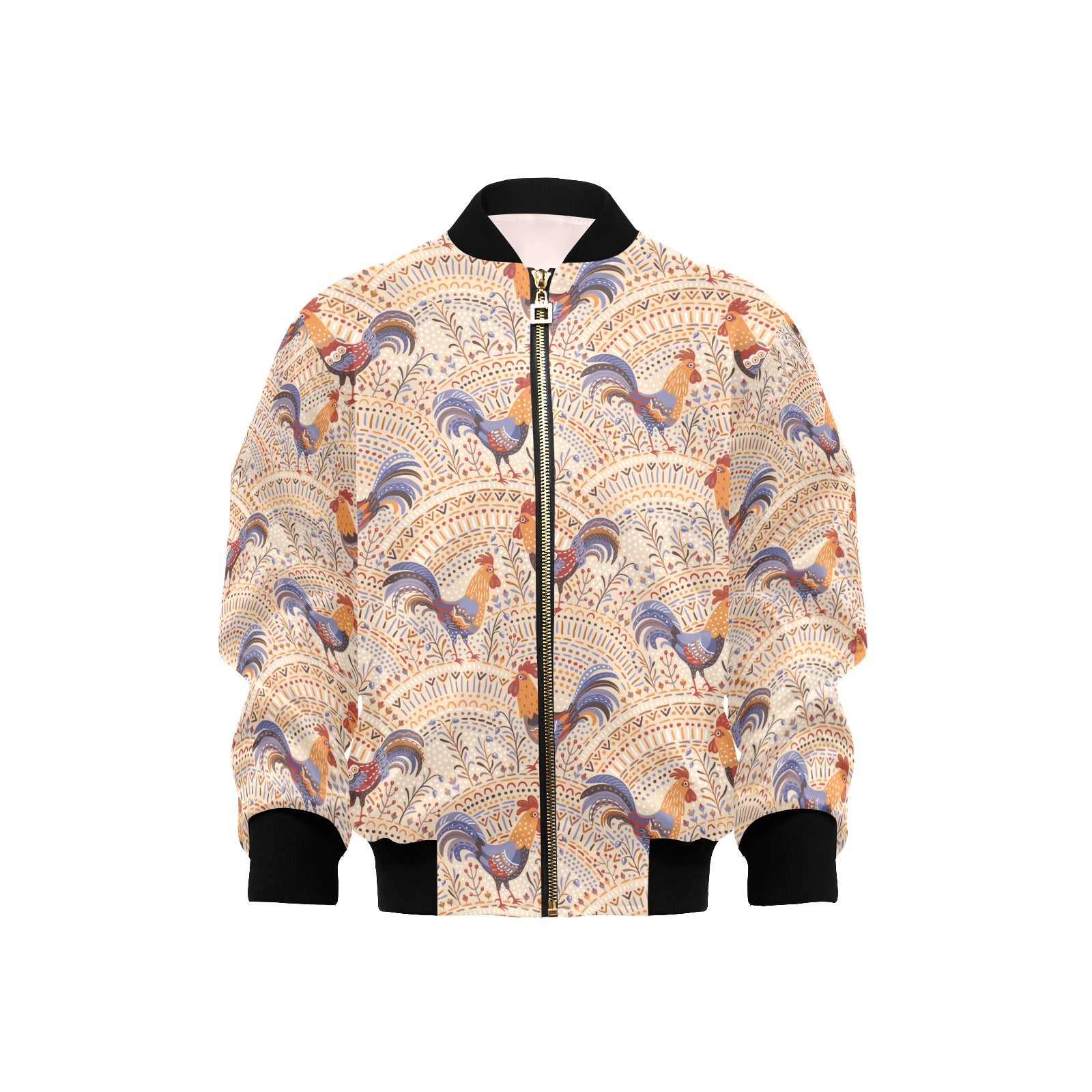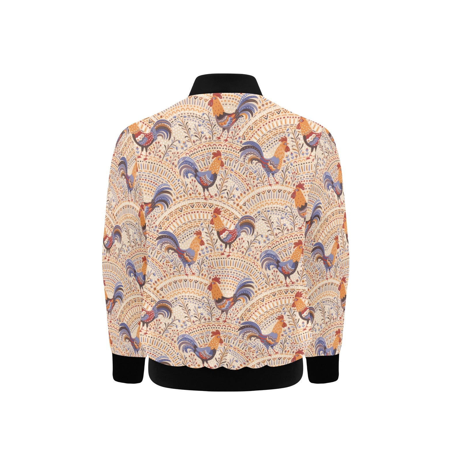 Cute rooster chicken cock floral ornament backgrou Kids' Boys' Girls' Bomber Jacket